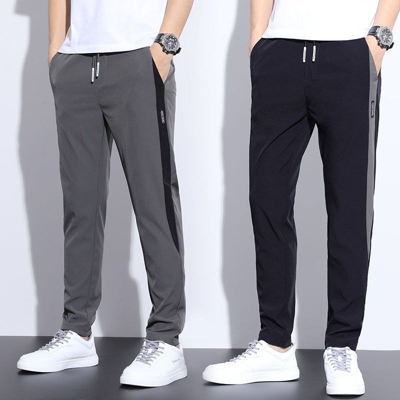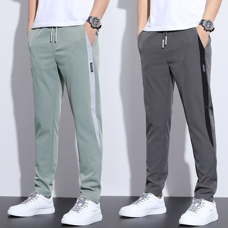 Nouveaux pantalons en soie de glace hommes été minces droites pantalons extensibles minces hommes pantalons de sport amples