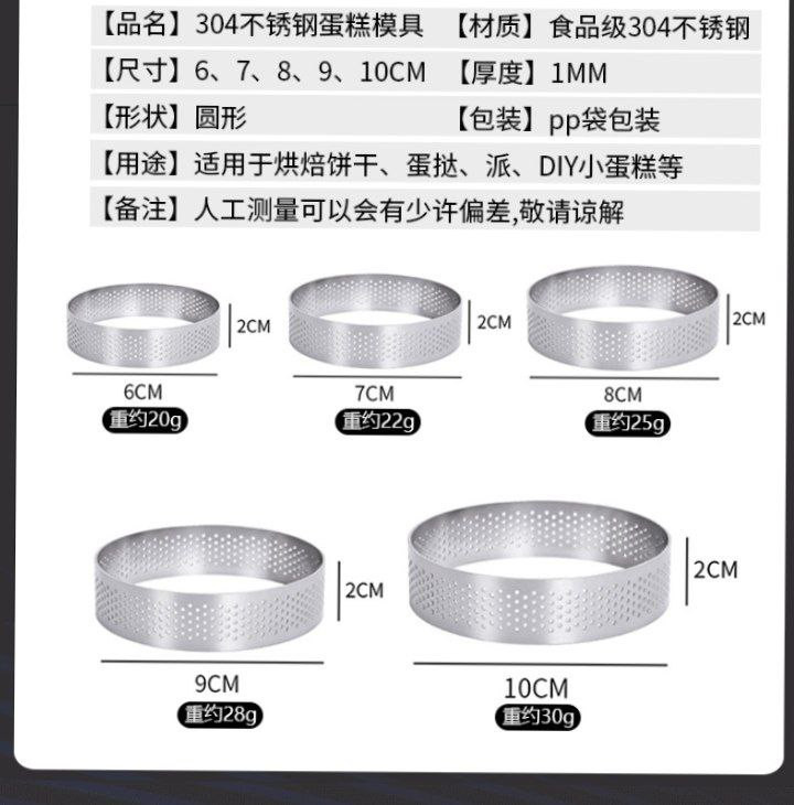 Moule à mousse en acier inoxydable 304 Anneau de tour rond avec trous Gâteau ovale français Fromage DIY Ustensiles de cuisson