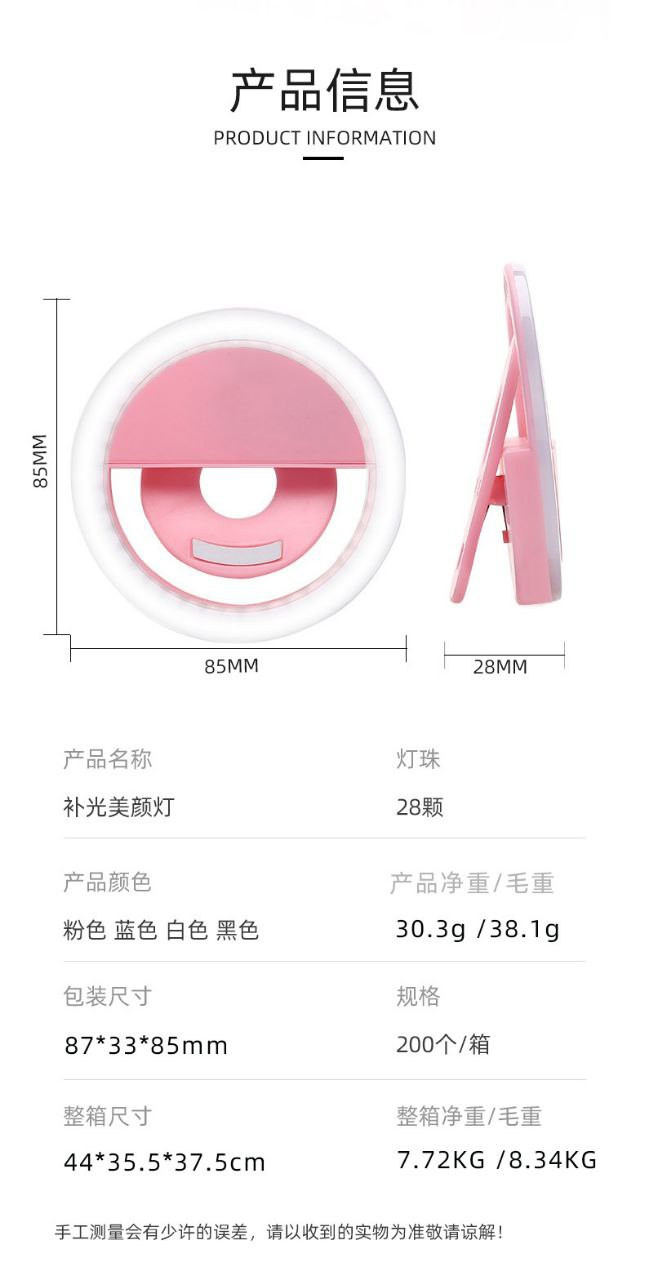 Selfie ringlight mini pour téléphone portable rond diffusion en direct embellissement anneau lumineux type de batterie selfie lumière de remplissage