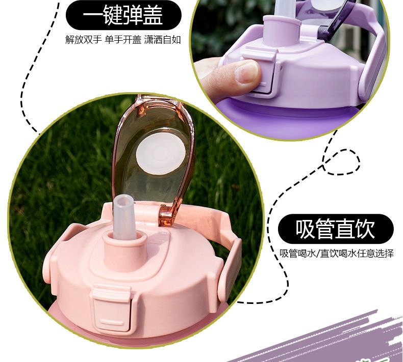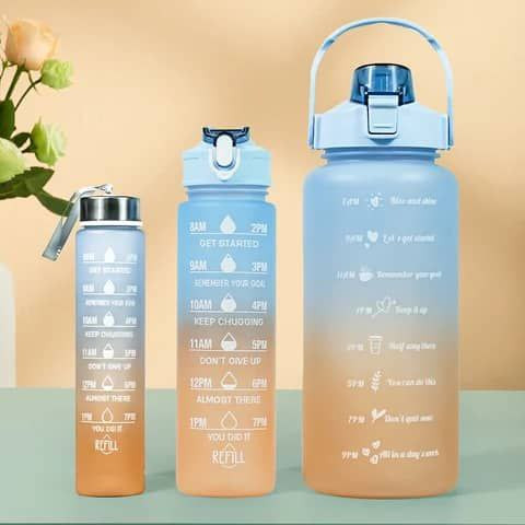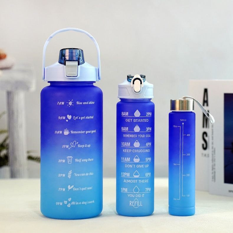 Dégradé trois pièces en plastique bouteille de sport portable paille espace tasse en plein air, tasse bouteille d'eau 2000ml