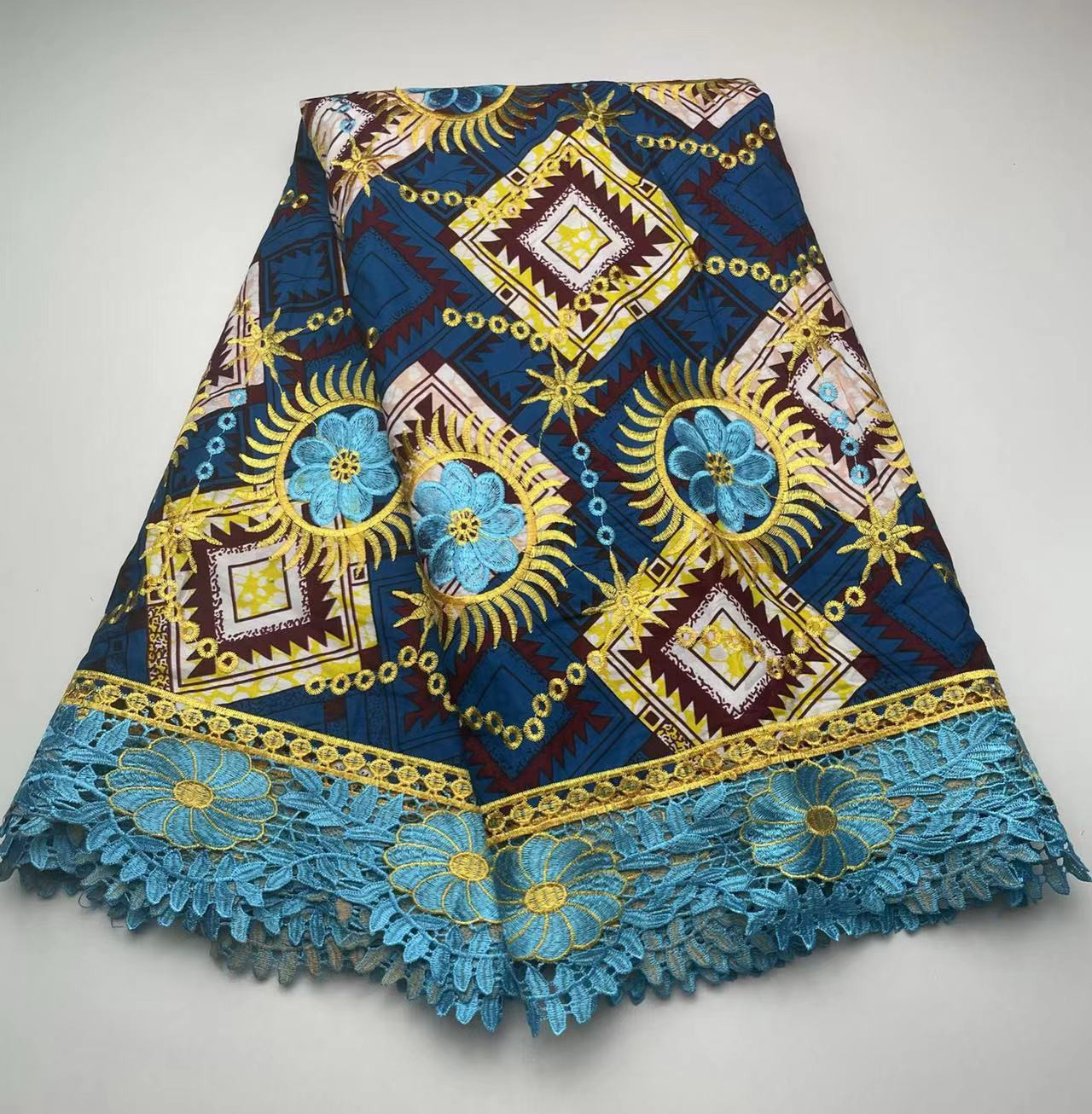 Tissu de dentelle de broderie aux bord fleuris de cire africaine de coton a la mode par coupe de 6 yards