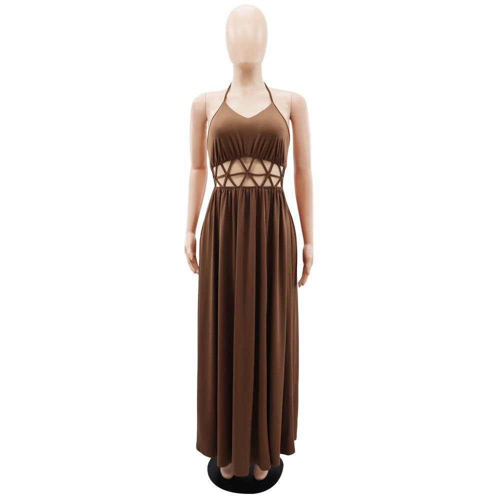 Robe transfrontalière européenne et américaine sexy taille haute creuse dos nu à lacets fente décontractée pour femmes