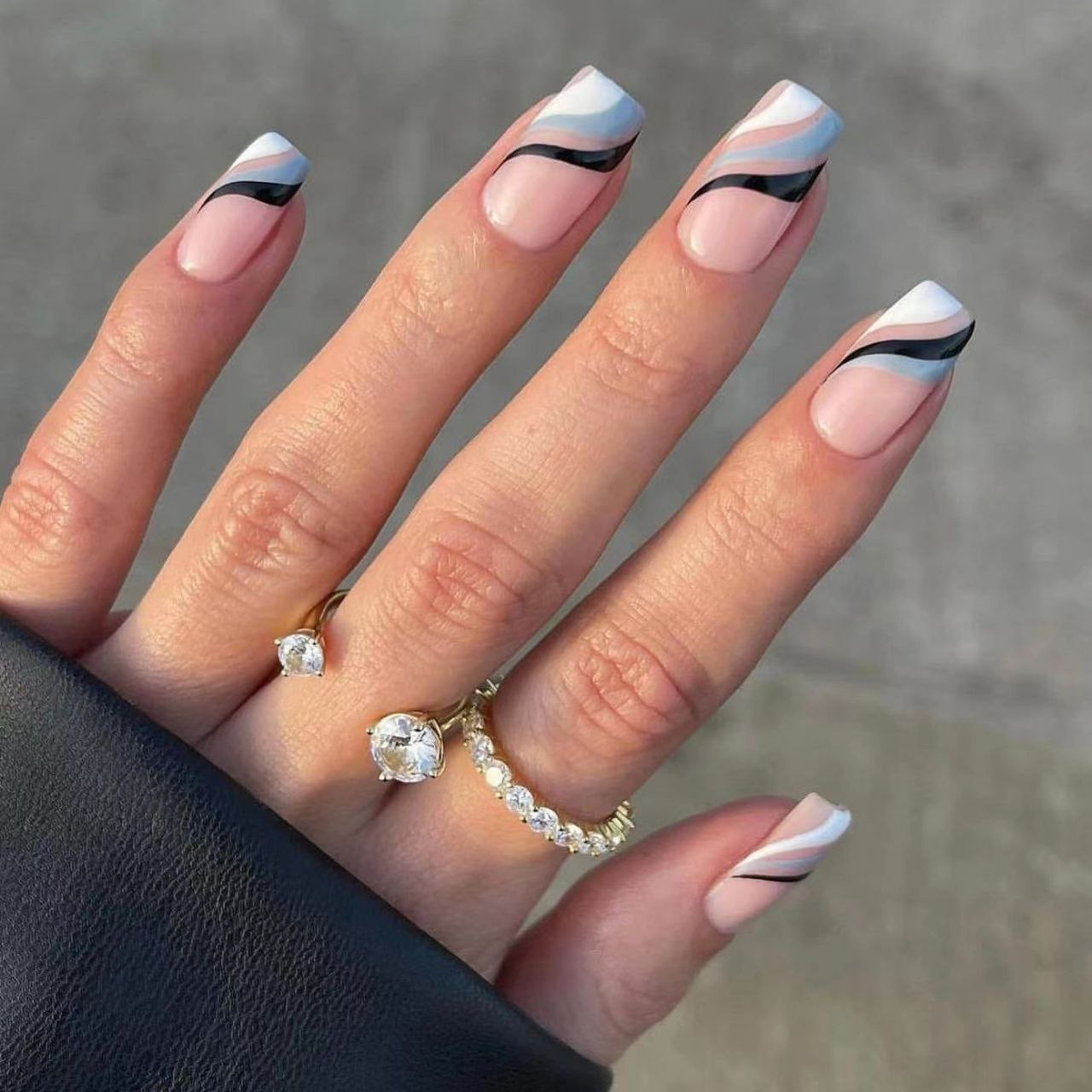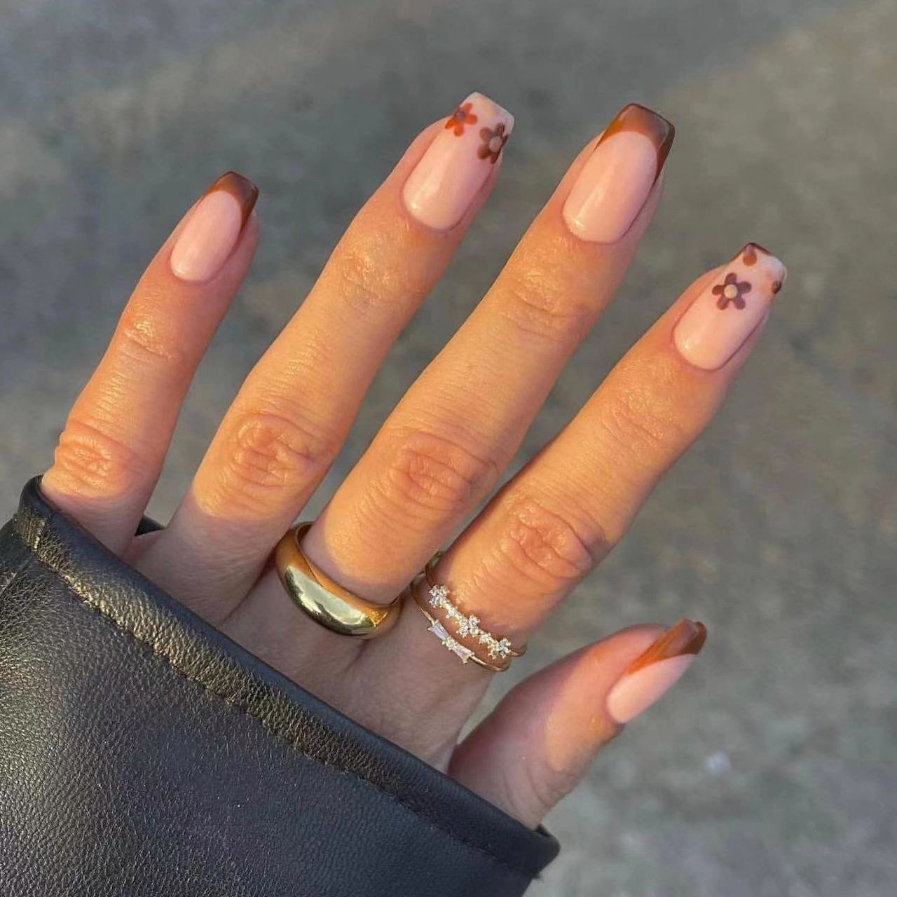 Manucure portable, style simple fleur française, manucure portable, manucure portable, faux ongles