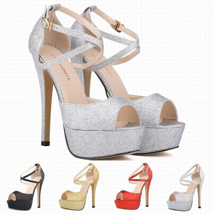 Sandales pour femmes à talons super hauts à paillettes fines de style britannique, plateforme imperméable, bouche de poisson creuse, même style que les célébrités