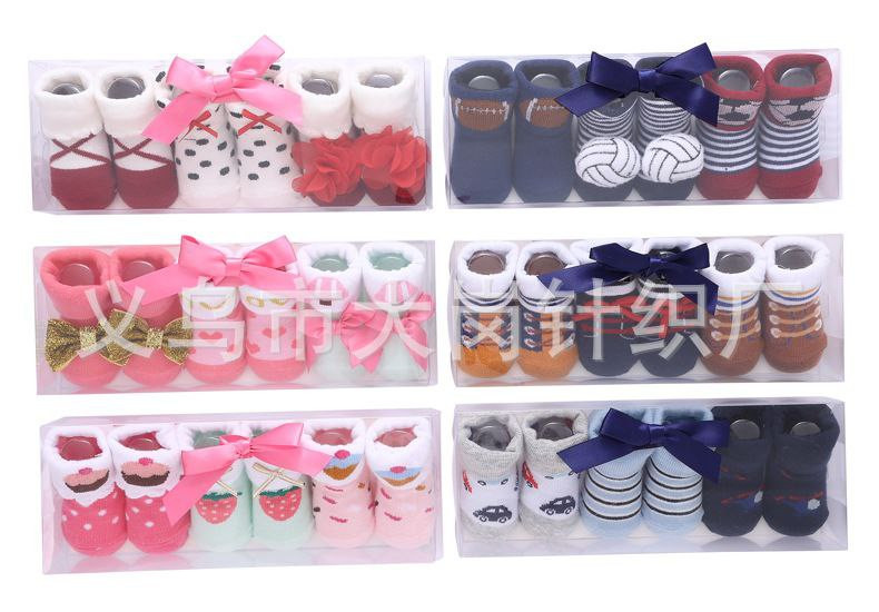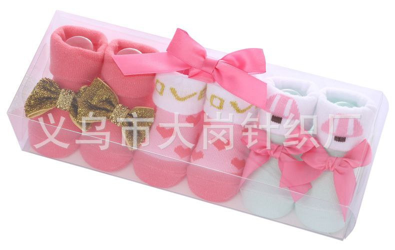 Mignon chaussettes pour enfants arc transfrontalier princesse rayé bébé chaussettes boîte-cadeau
