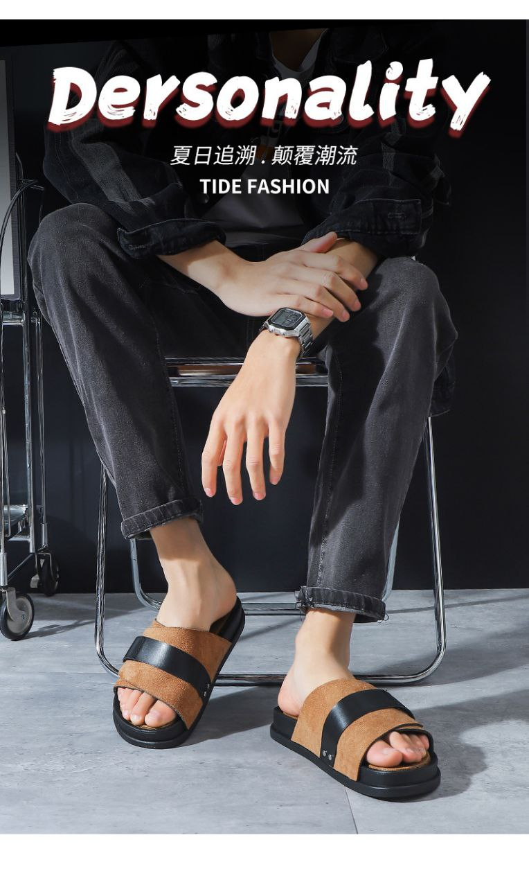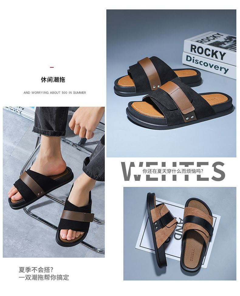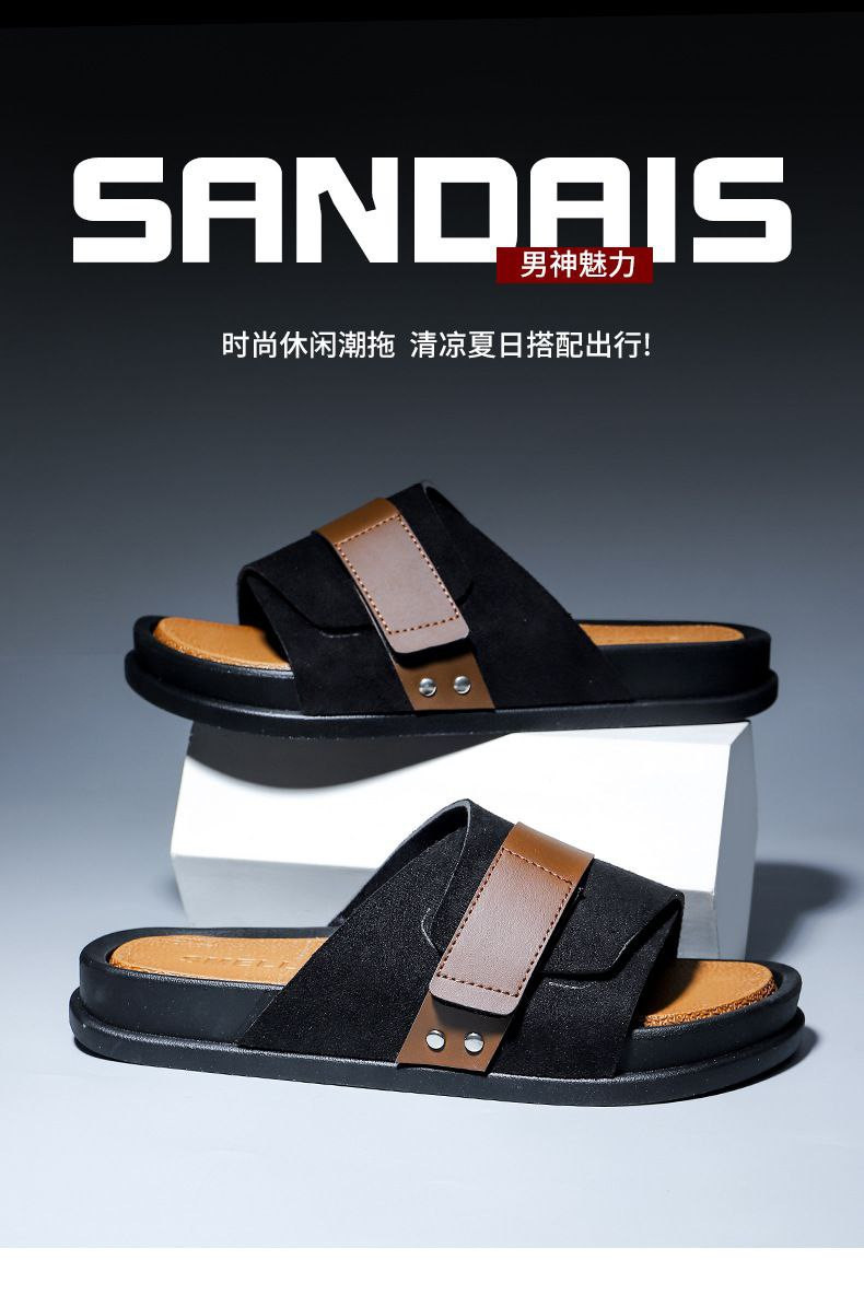 Pantoufles d'été décontractées en cuir nubuck EVA à semelles épaisses pour hommes, pantoufles d'affaires en un mot, nouveau style