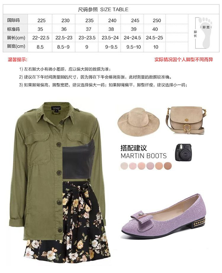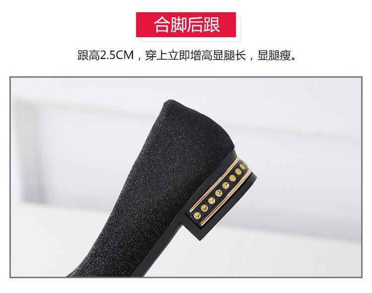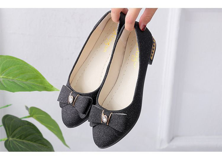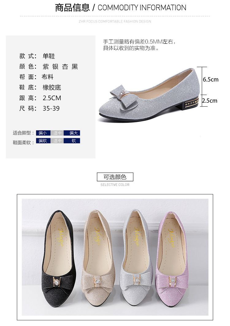 Nouveau style femmes style coréen à talons bas bout rond chaussures de haricots peu profonds chaussures pour femmes en strass givré
