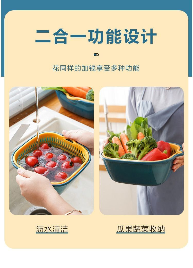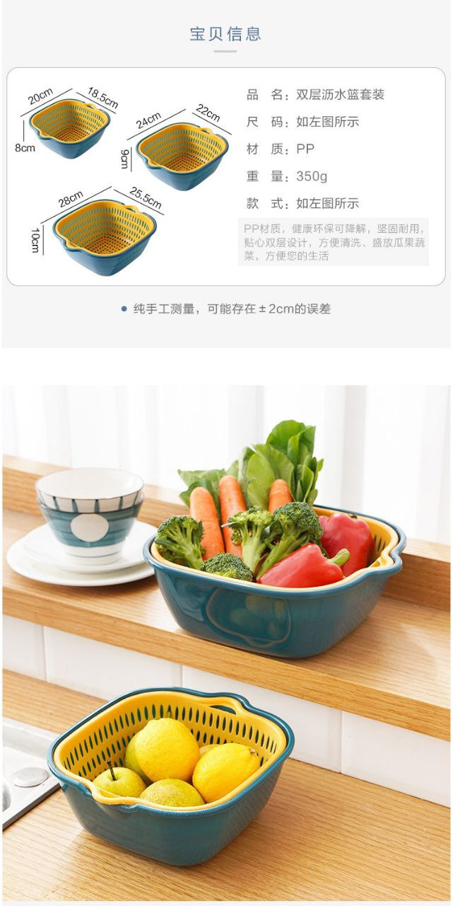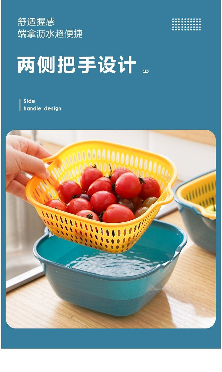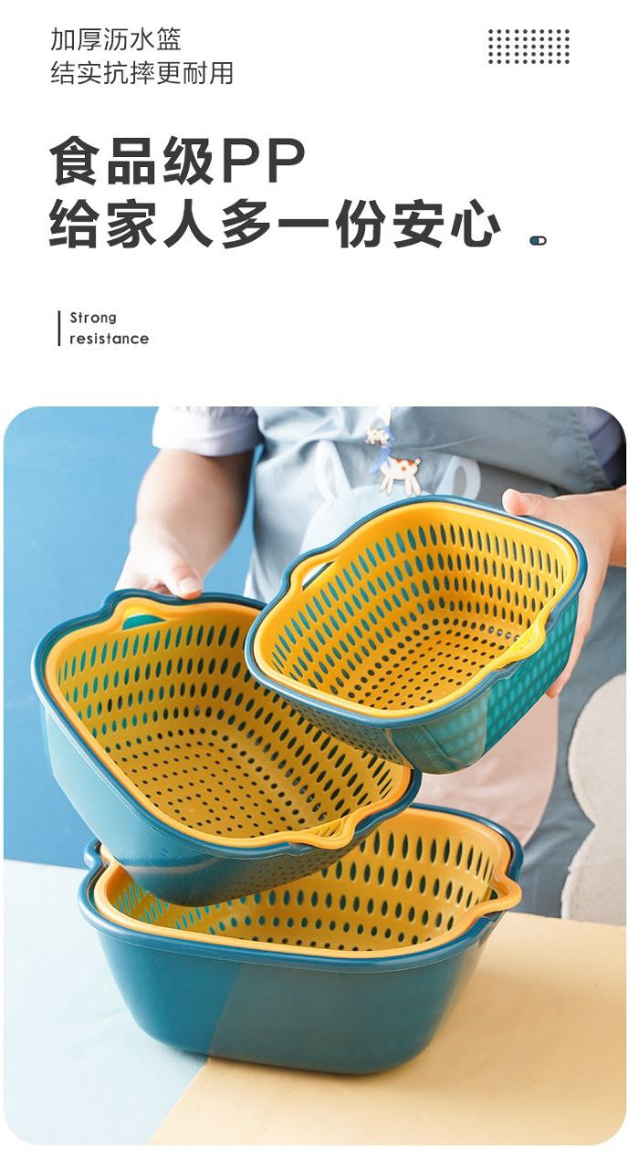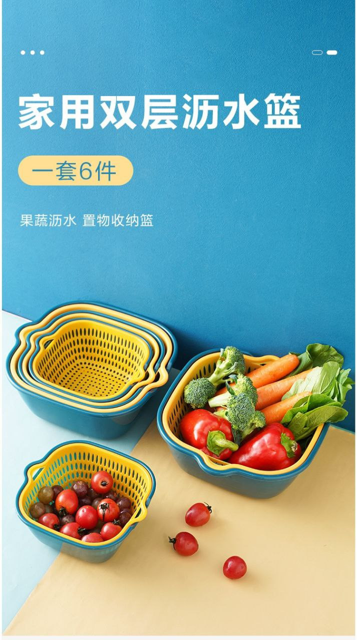 Panier de vidange d'évier de légumes à double couche, panier de vidange de lavage de fruits de cuisine, artefact de fuite, panier de lavage de légumes Chuyi en six pièces