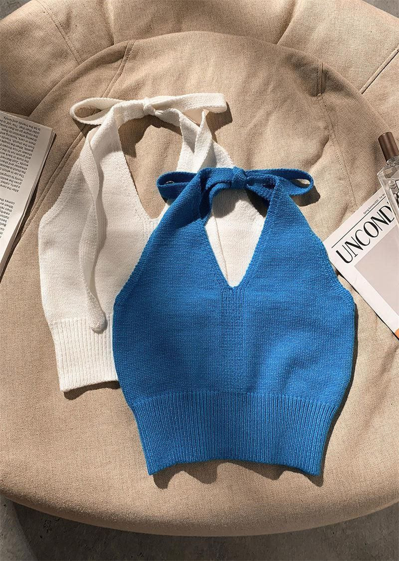 Haut tricoté à couche intérieure de niche pour femmes, bretelles à col licou, pour vêtements d'été, gilet court à bretelles blanches