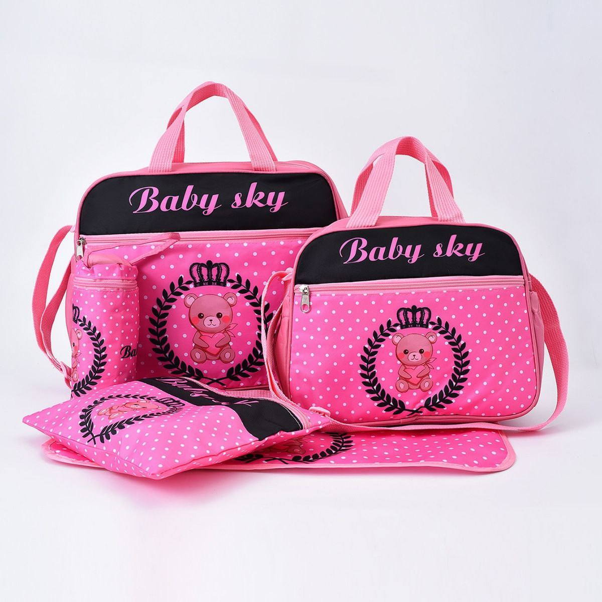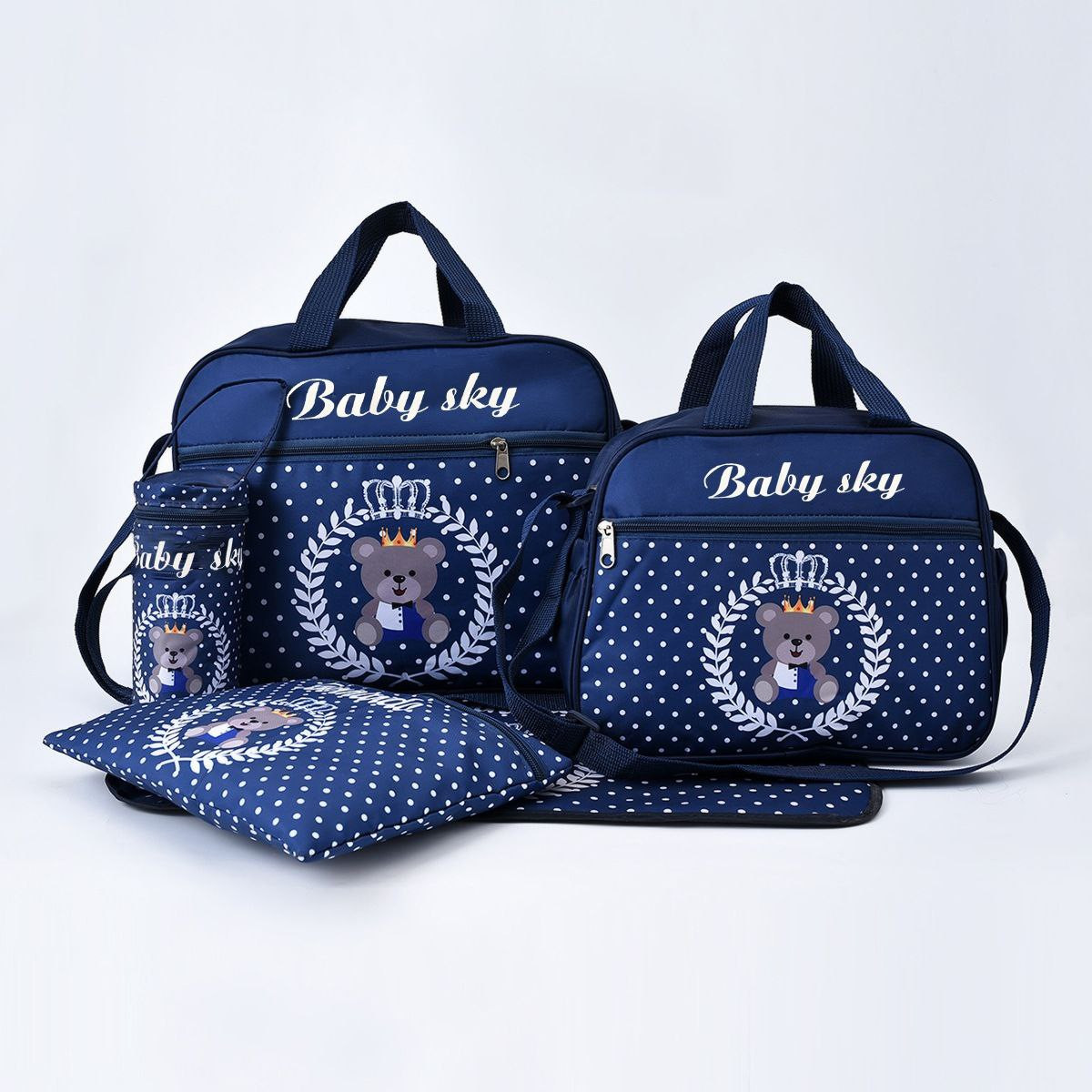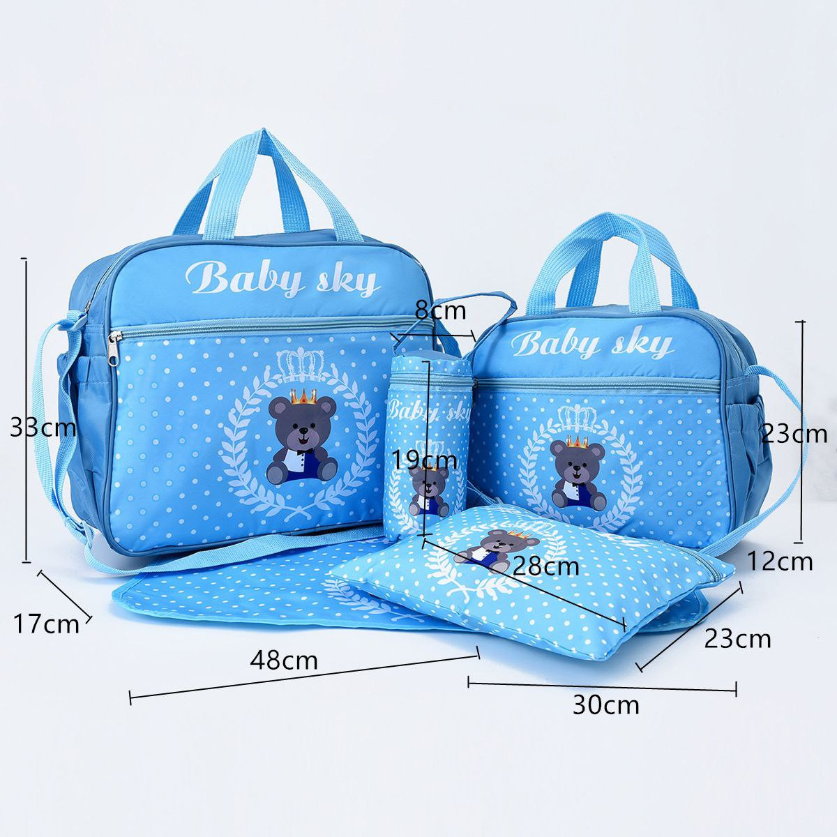 Sac momie ours imprimé à la mode, ensemble de cinq pièces, multifonctionnel, grande capacité, une épaule, sac à bandoulière pour mère et bébé, ensemble de sacs à couches