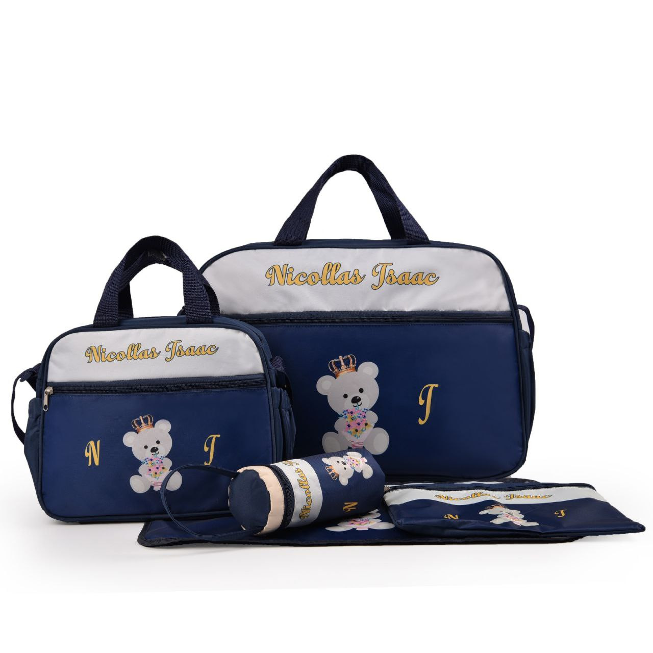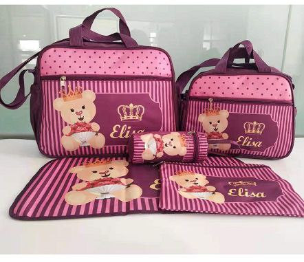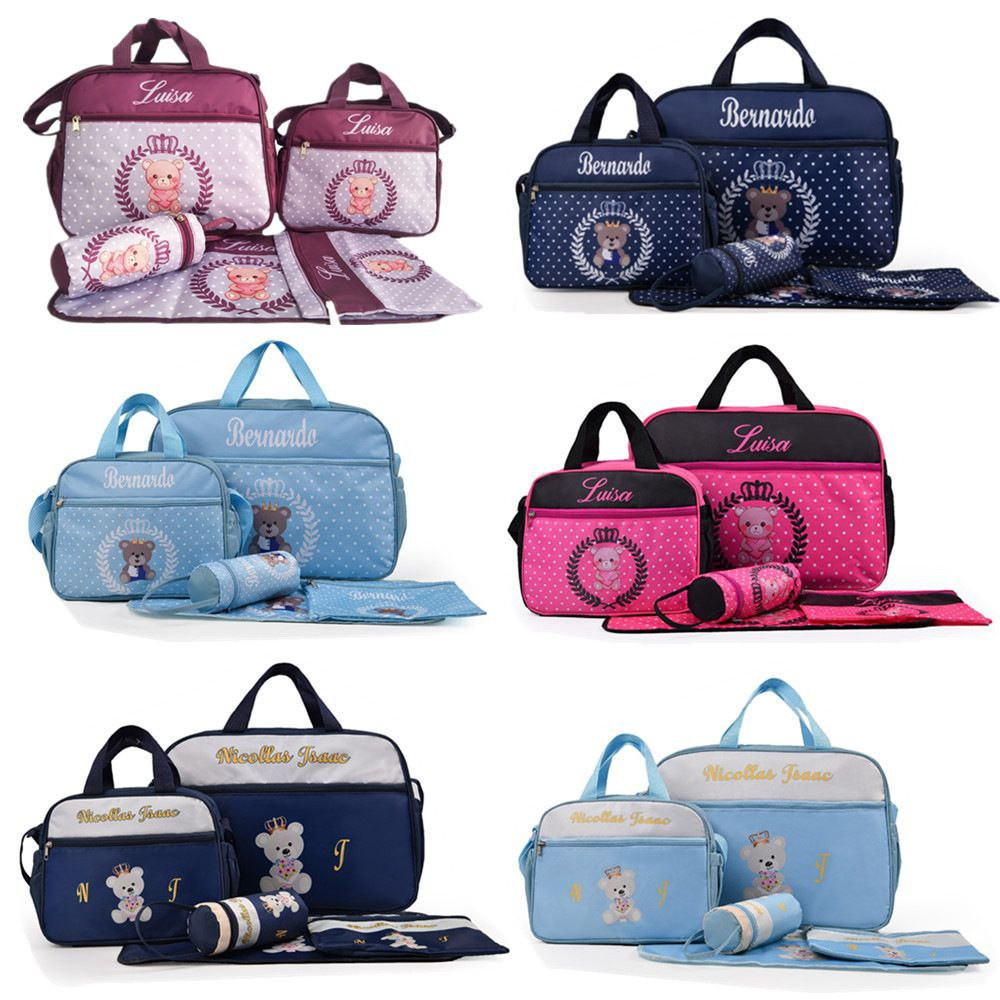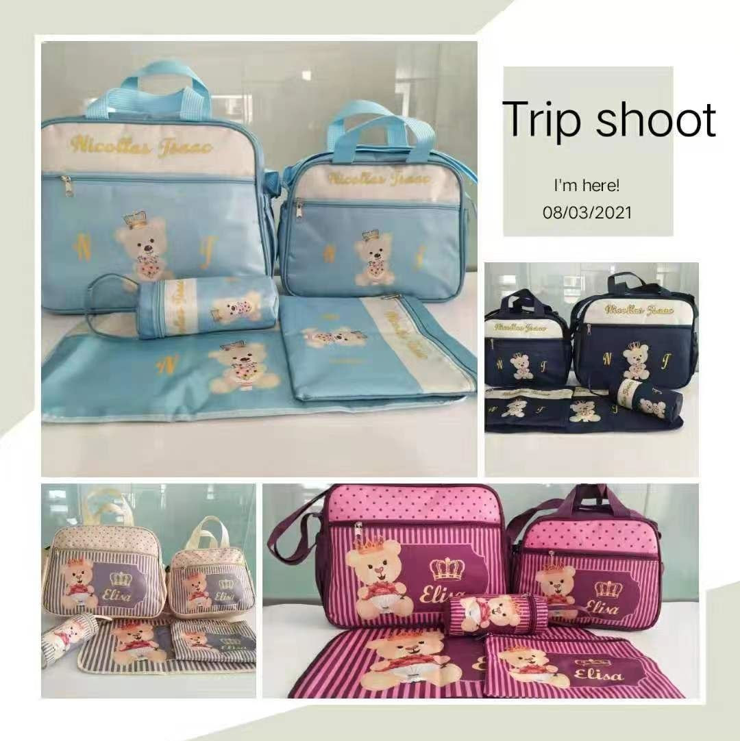 Sac momie ours imprimé à la mode, ensemble de cinq pièces, multifonctionnel, grande capacité, une épaule, sac à bandoulière pour mère et bébé, ensemble de sacs à couches