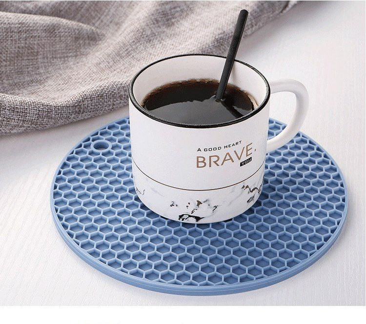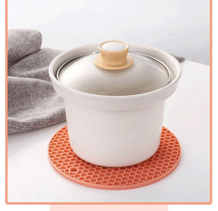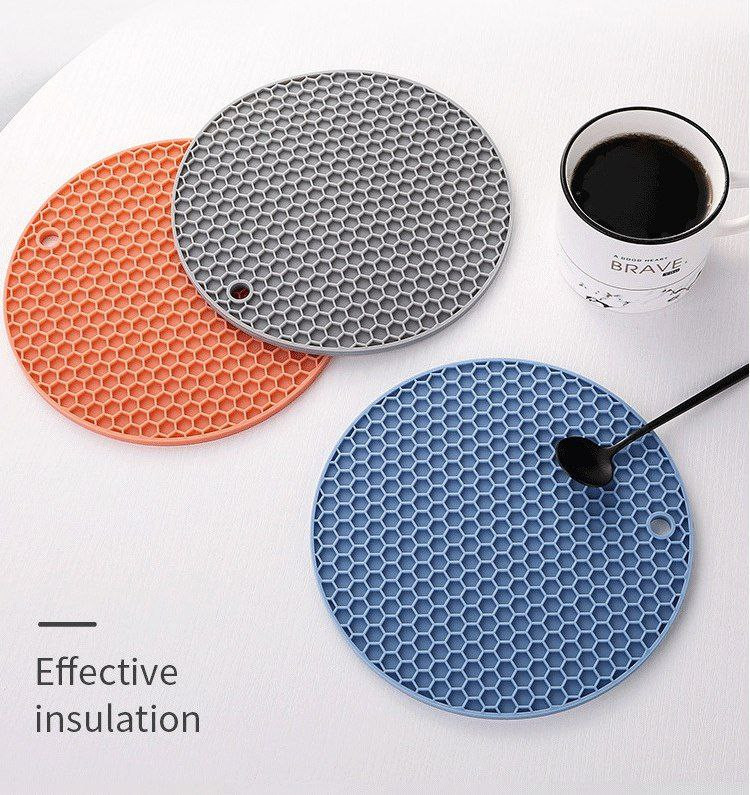 Napperon rond en silicone en nid d'abeille tapis antidérapant anti-brûlure tapis de pot isolant thermique tapis de table en silicone facile à nettoyer résistant aux hautes températures