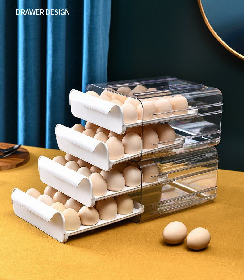 Boîte à double tiroir de conservation des œufs rangement cuisine conservation des œufs 32 transparente