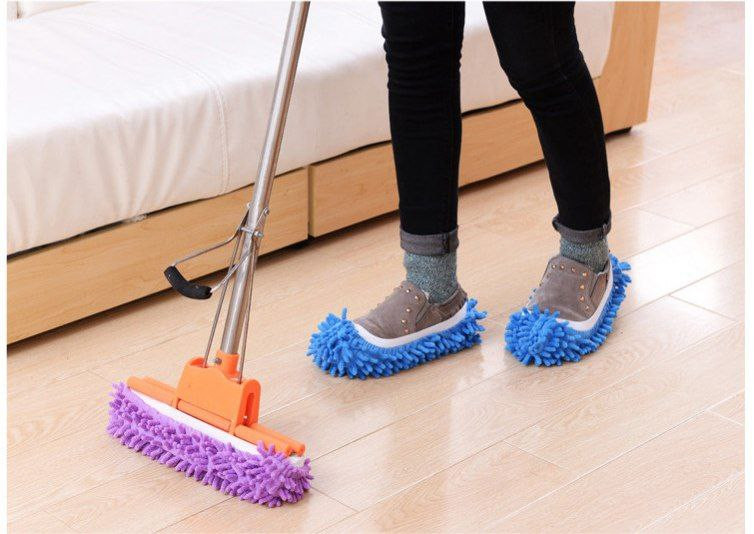 Couvre-chaussures en chenille amovibles et lavables , pantoufles de nettoyage de sol