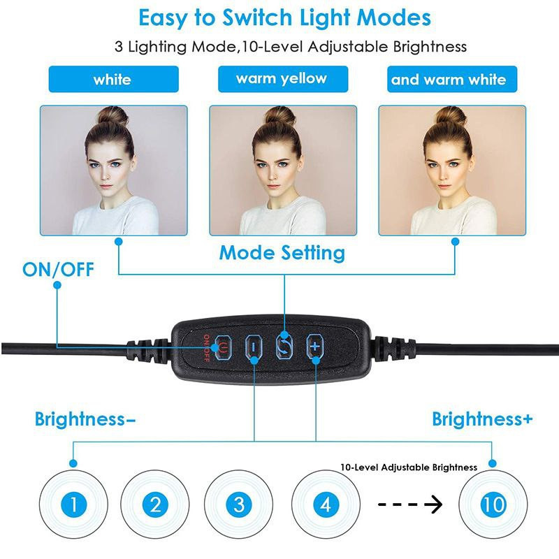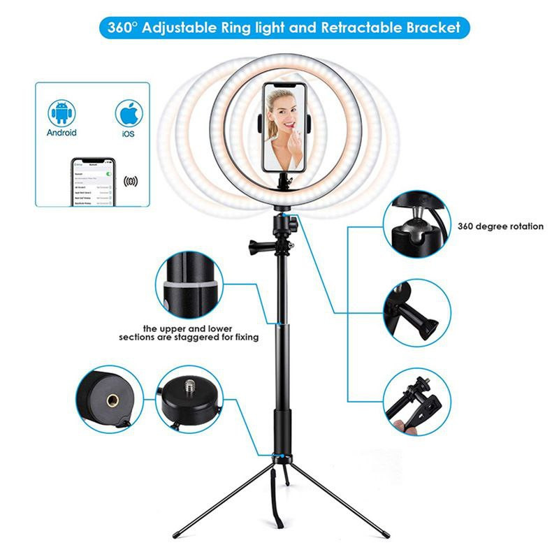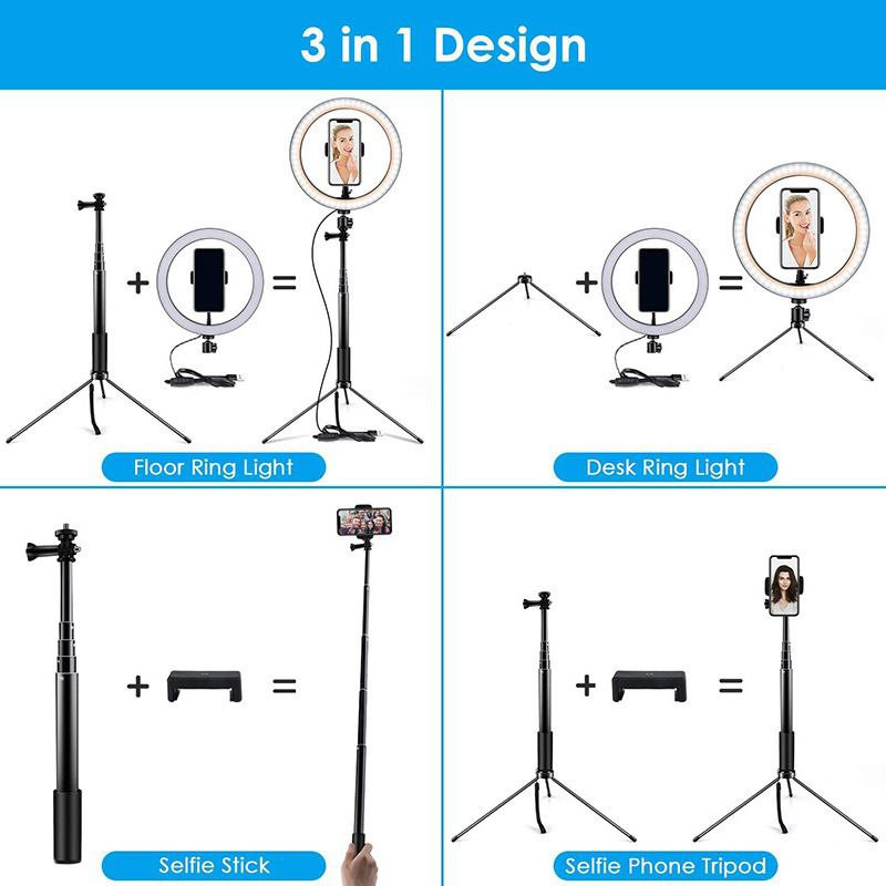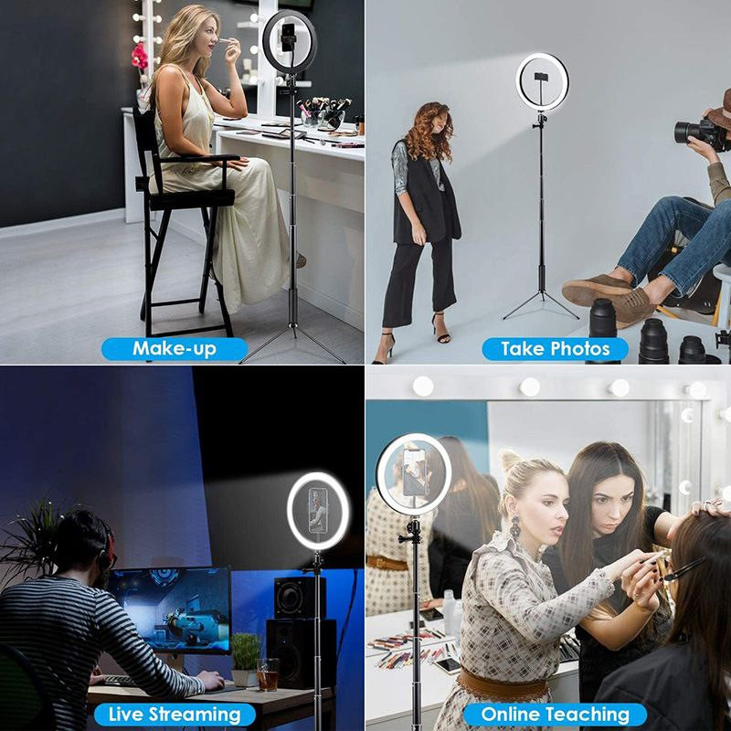 Ring light Anneau lumineux de 10 pouces, lumière de beauté pour selfie, diffusion en direct, support au sol de 1,6 m,