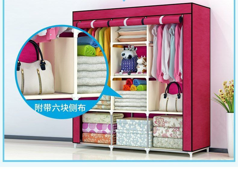 Armoire simple en tissu tuyau d'acier épaissi et renforcé salle de location chambre ménage penderie suspendue armoire anti-poussière.