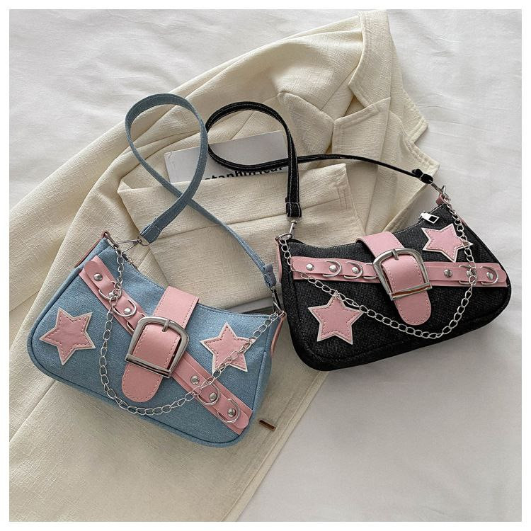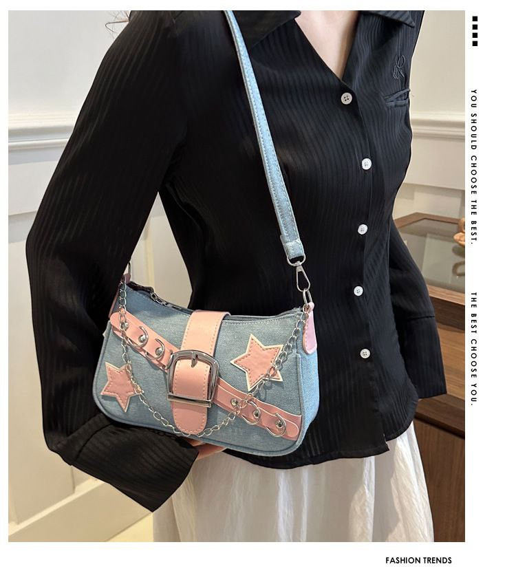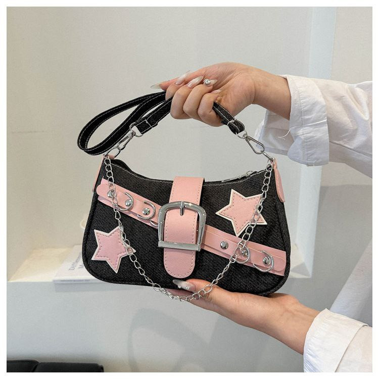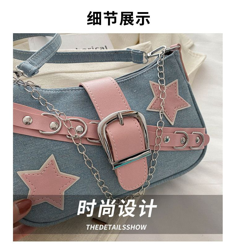 Sac sous les bras pour femme avec étoile nouveau décontracté denim chaîne portable épaule sous les bras