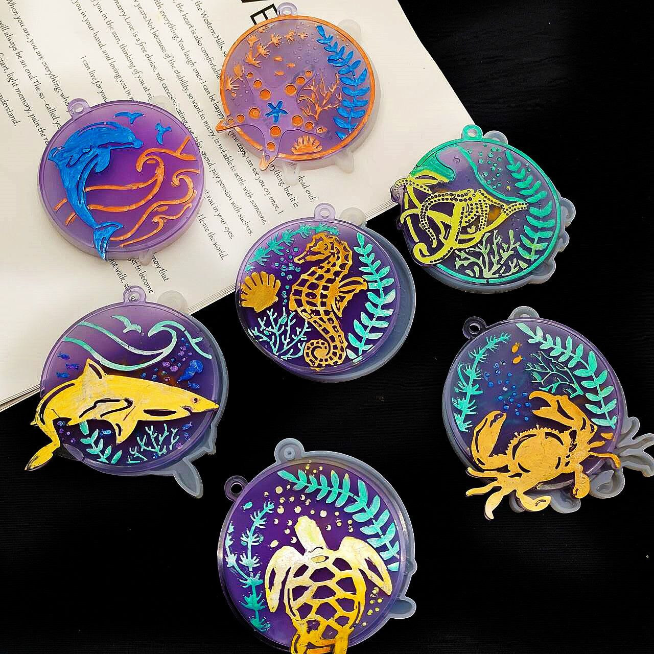 DIY7 – moule à colle pour étiquette ronde marine, étoile de mer, hippocampe, tortue de mer, étoile de mer et autres animaux marins, moule à pendentif