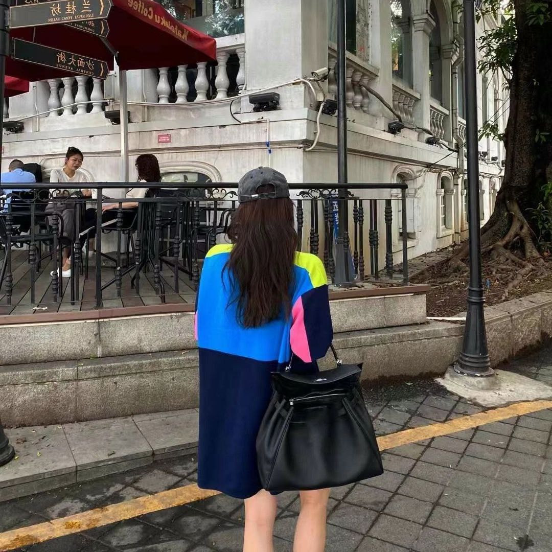 Col POLO ample de style coréen, robe tricotée mi-longue de couleur contrastée à la mode pour femmes, nouvelle saison