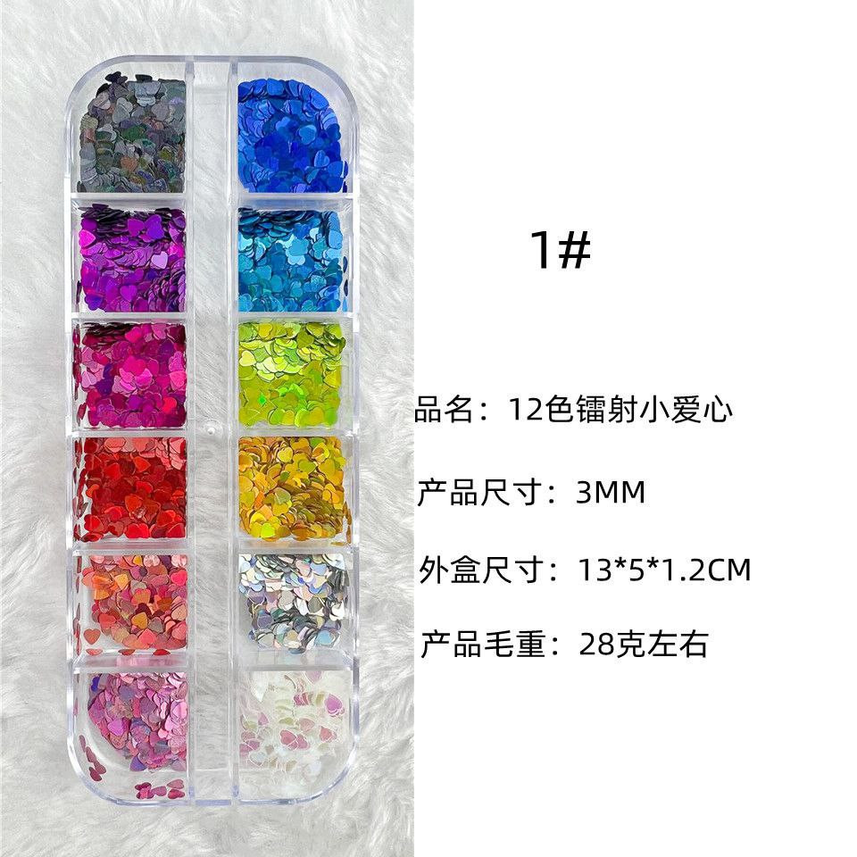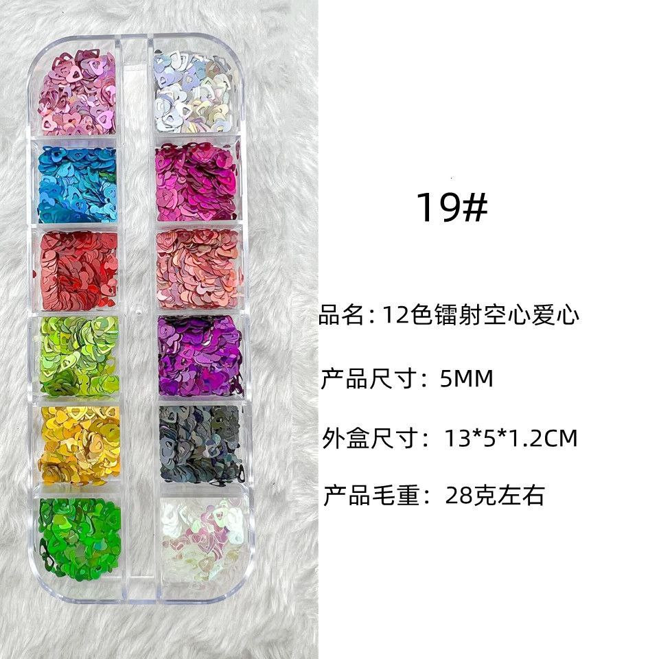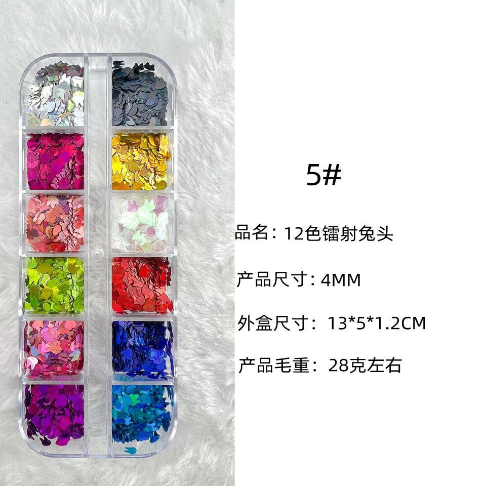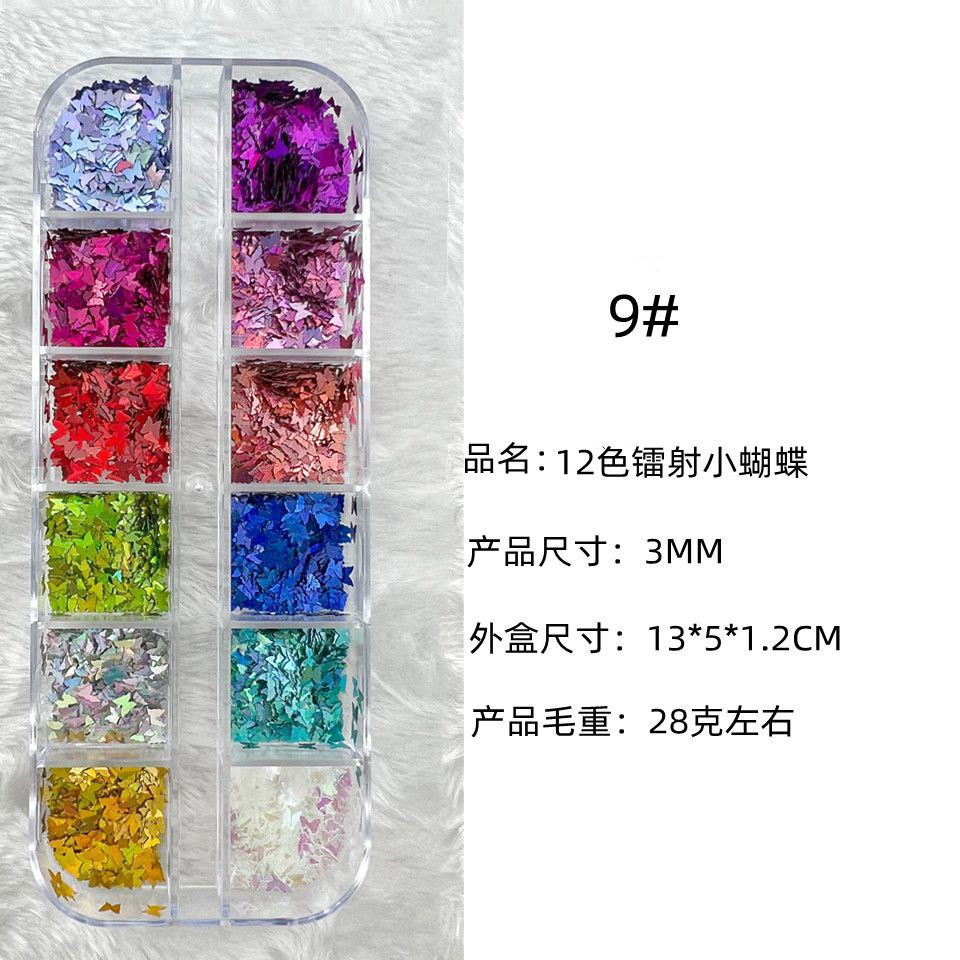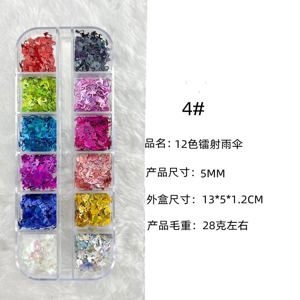 Manucure 12 cadres laser fins paillettes de forme spéciale papillon étoile à cinq branches parapluie feuille d'érable 20 accessoires pour ongles rose pailleté