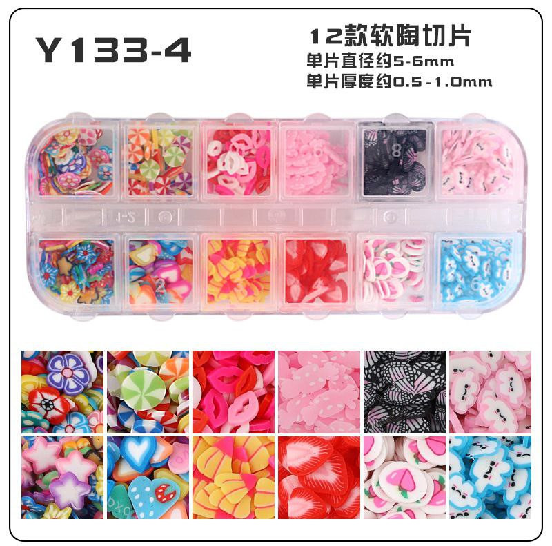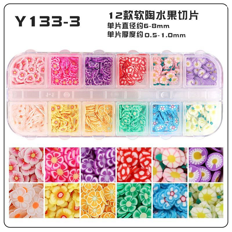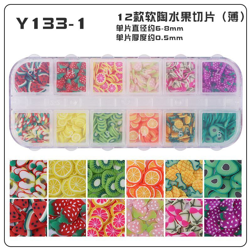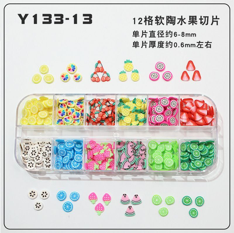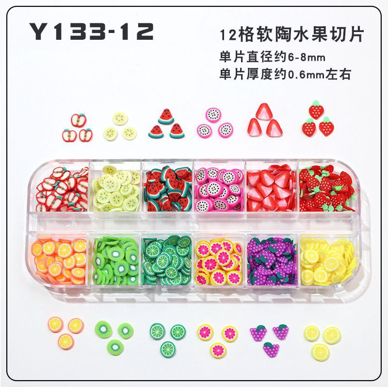 Tranches de fruits transfrontalières, tranches de poterie douce, boîte de 12 boîtes d'accessoires de nail art, matériel de bricolage fait à la main, remplissage de slime