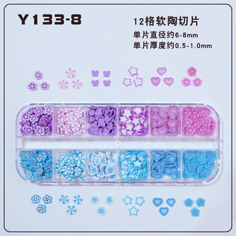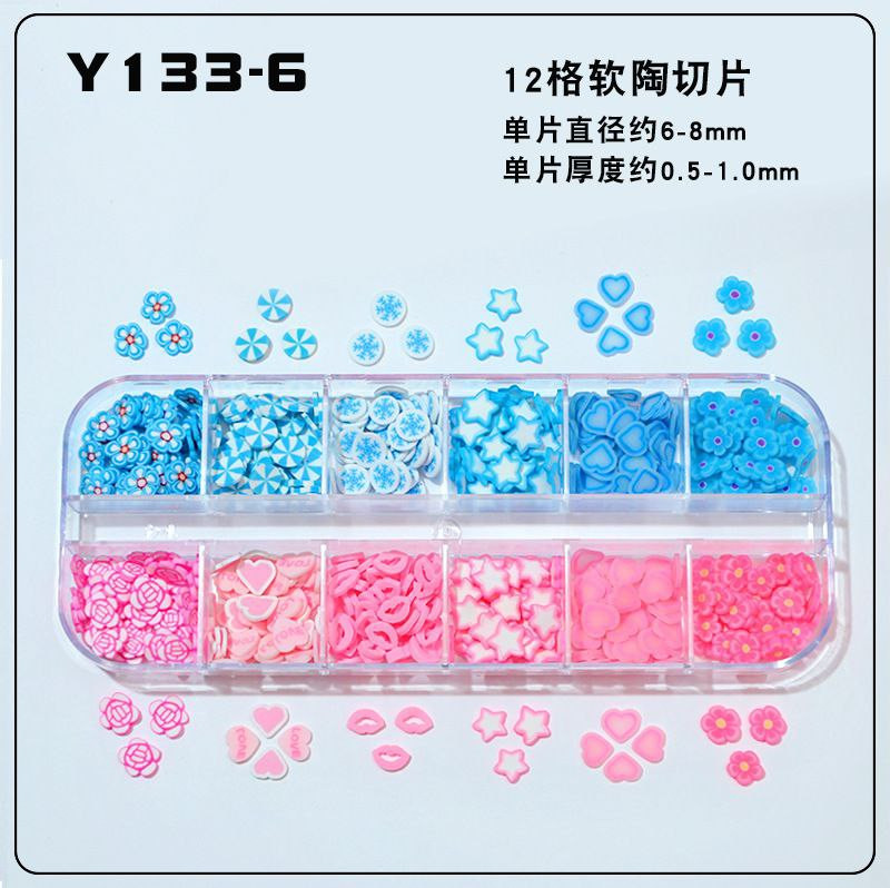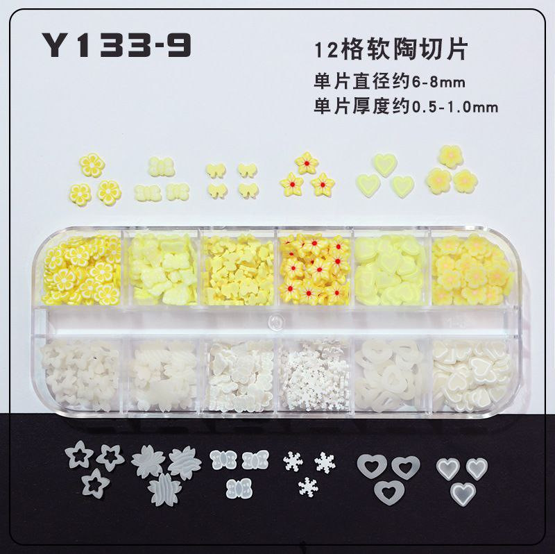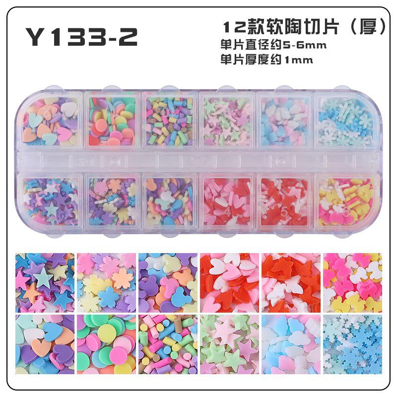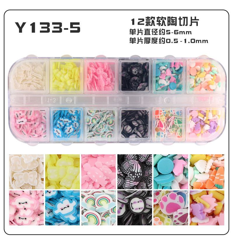 Tranches de fruits transfrontalières, tranches de poterie douce, boîte de 12 boîtes d'accessoires de nail art, matériel de bricolage fait à la main, remplissage de slime