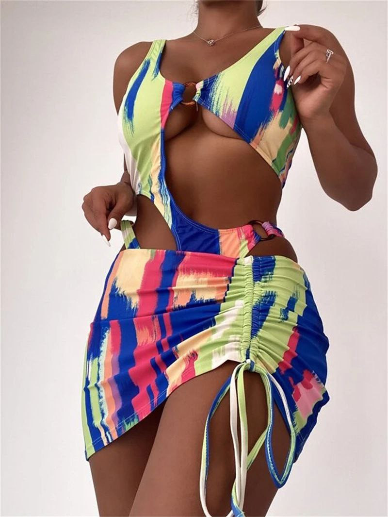 Maillot de bain trois pièces à pampilles européen, américain et africain bikini pour femme. Disponible en plusieurs couleurs.
