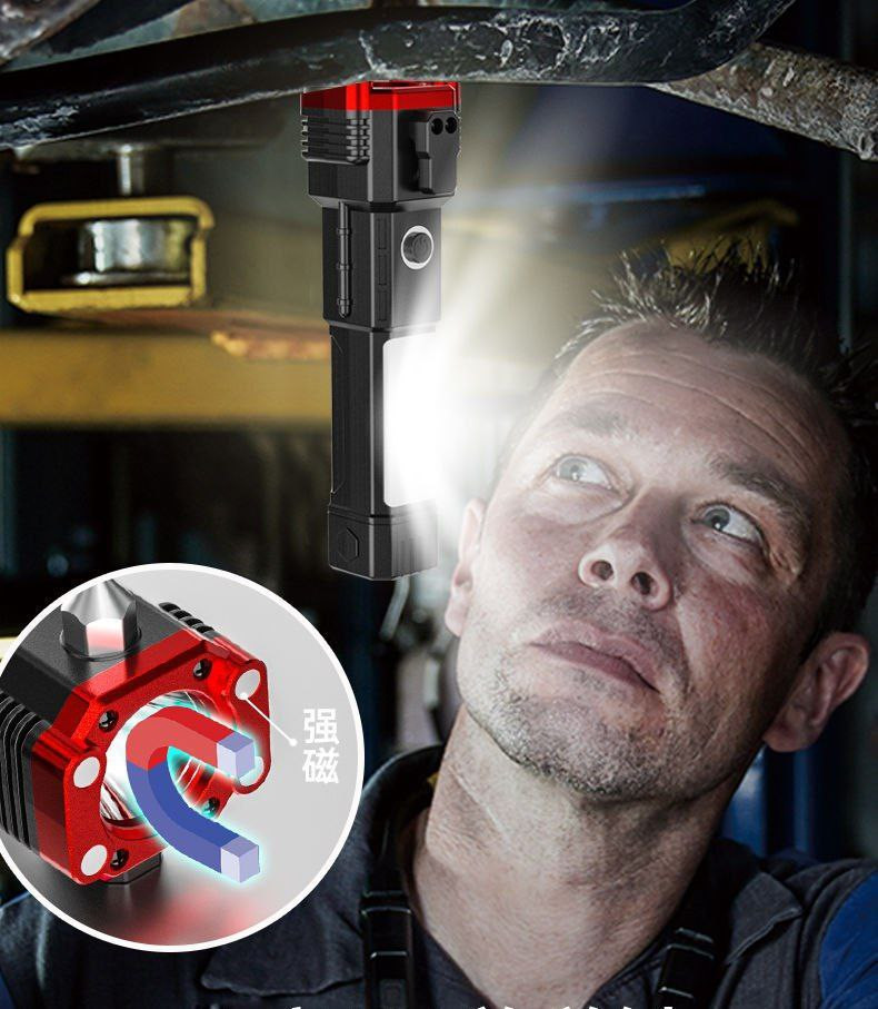 Marteau de sécurité pour voiture Lampe de travail multifonctionnelle avec banque d'alimentation Lampe de poche d'auto-défense pour la lutte contre les incendies d'urgence
