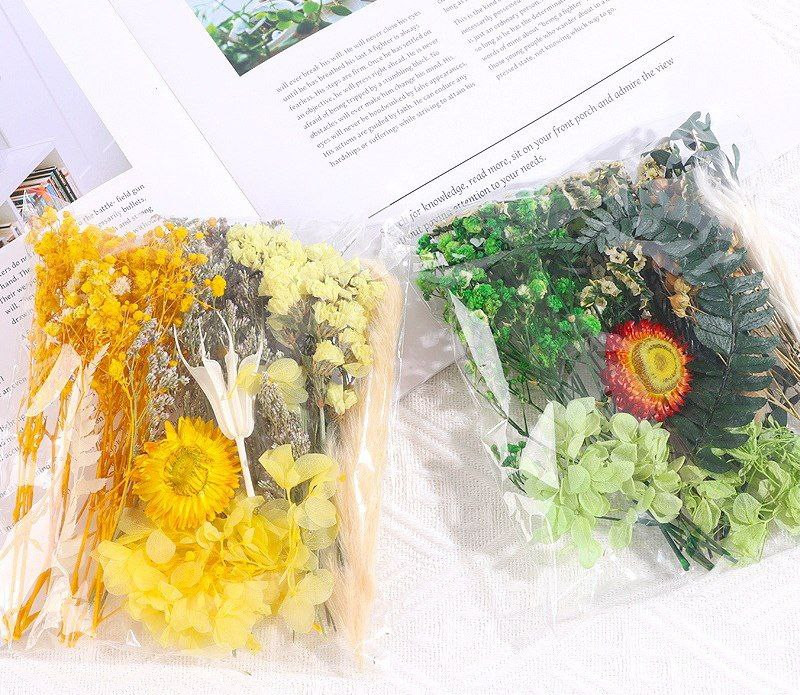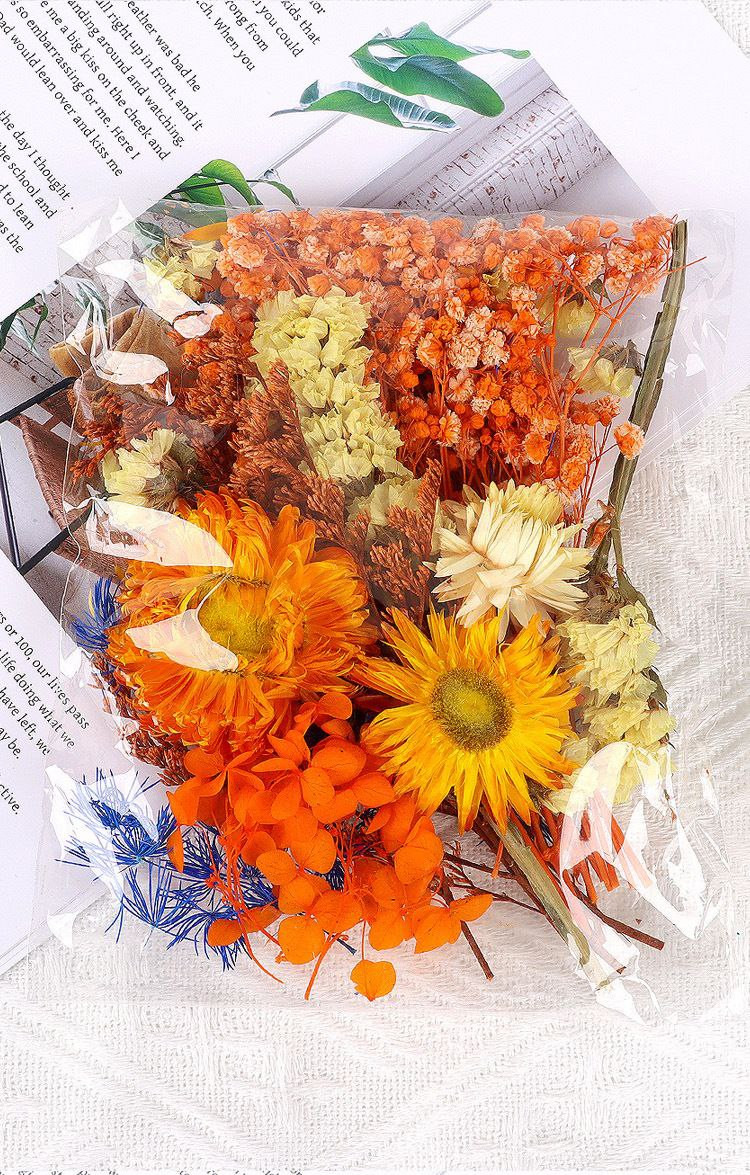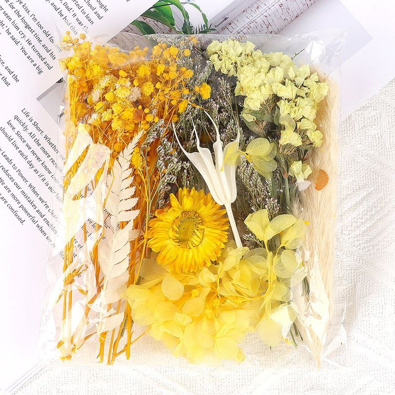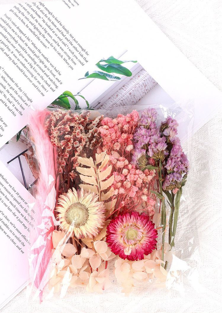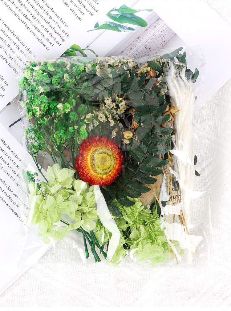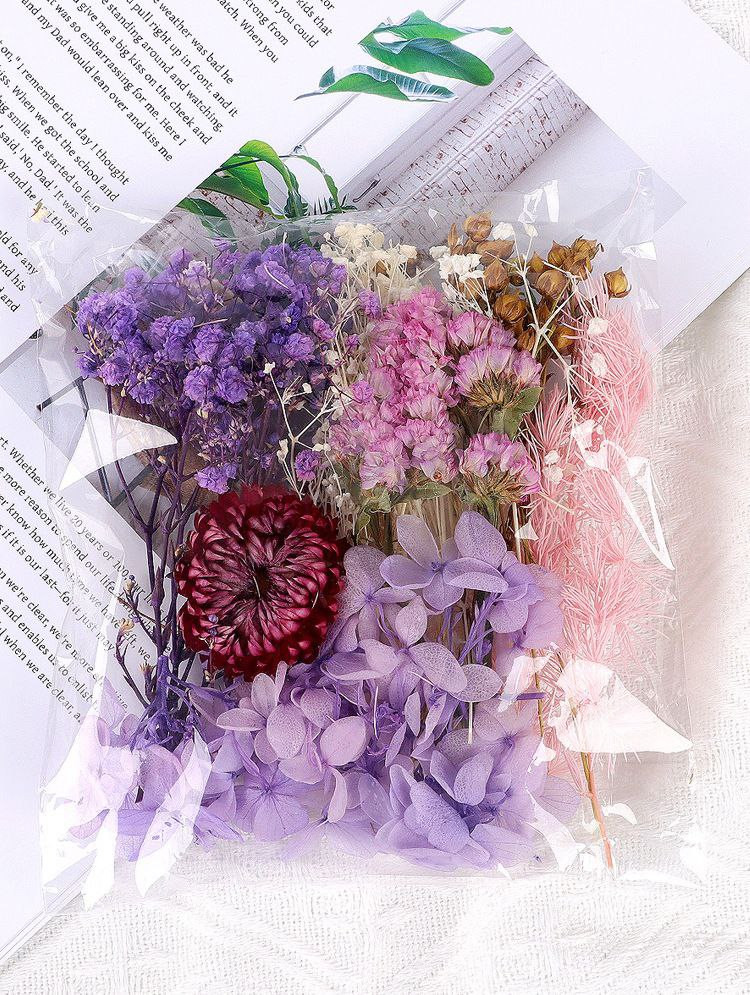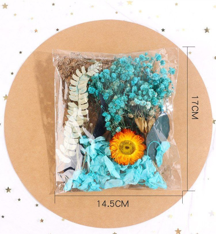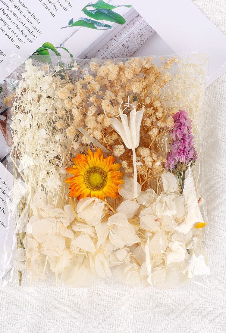 Fleurs immortelles naturelles, fleurs séchées mélangées, fleurs artificielles, autocollants de ventilateur faits à la main, fleurs flottantes en colle