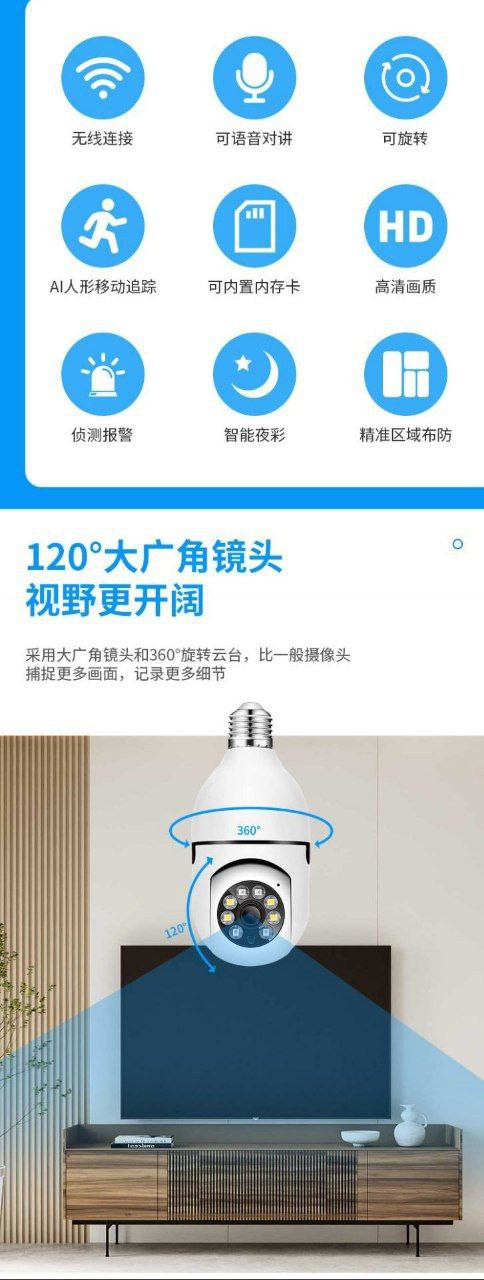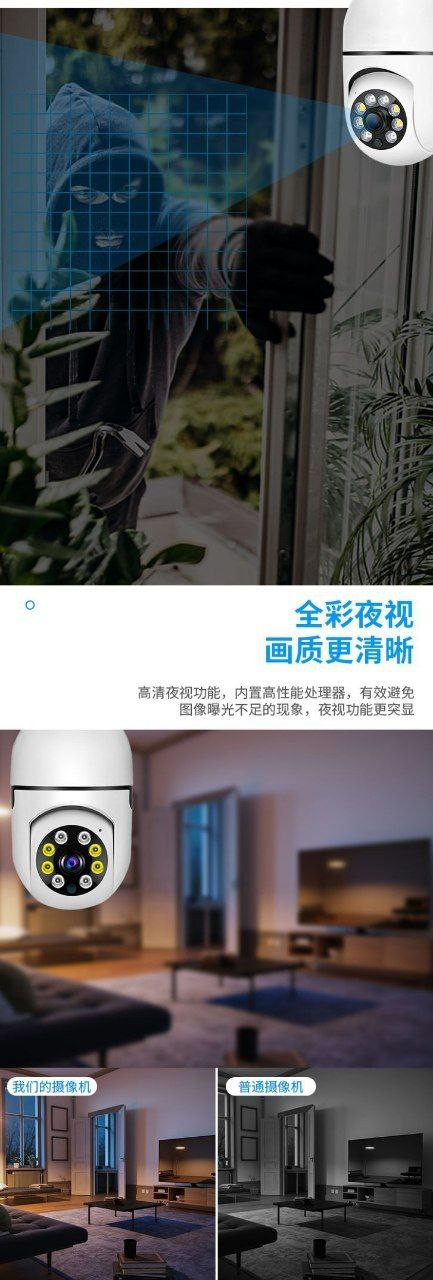 Caméra ampoule sans fil double lumière couleur 360 degrés wifi surveillance à distance caméra maison