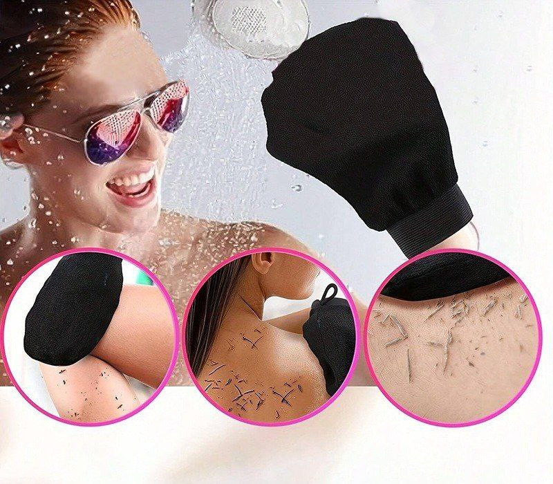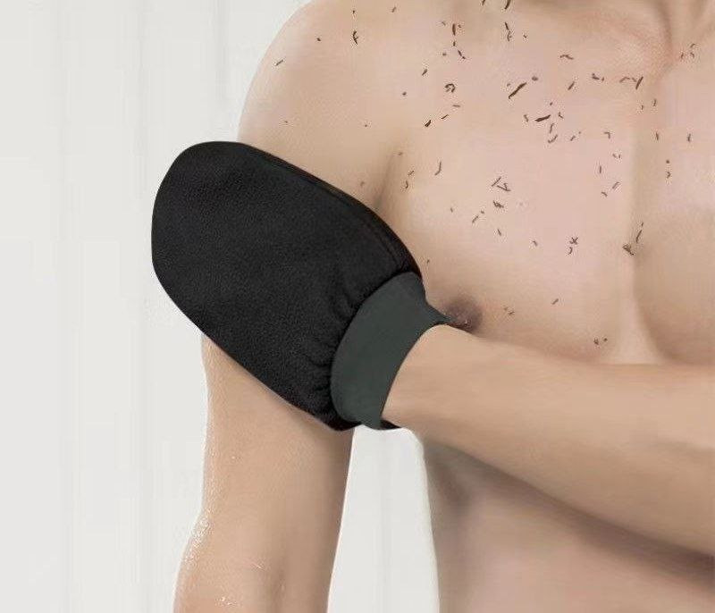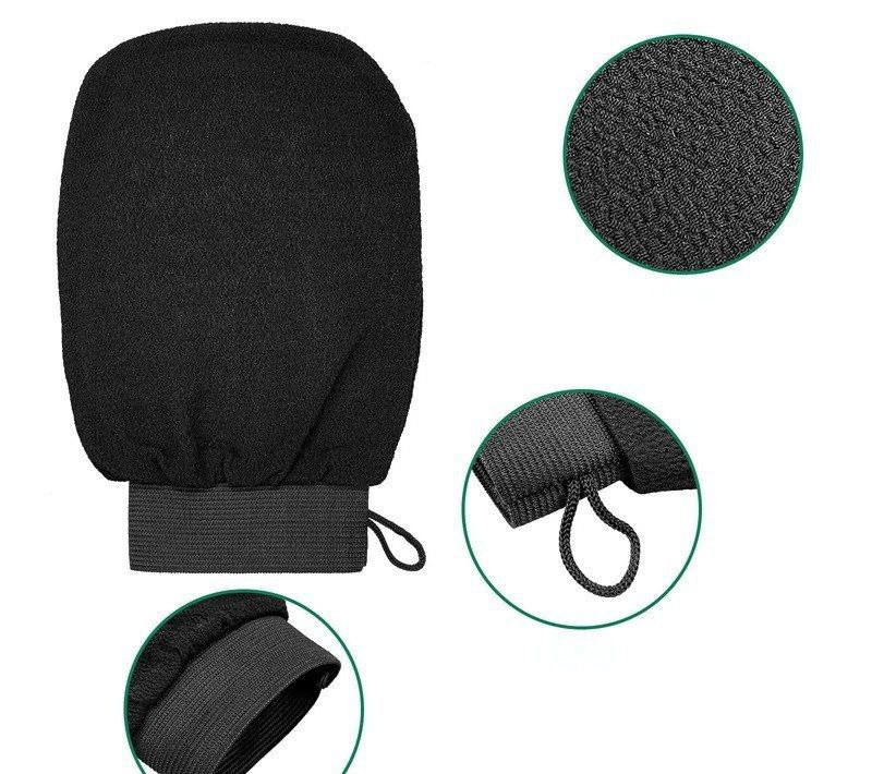 Serviette de bain noire, gants de gommage exfoliants pour nettoyage en profondeur, massage double face monocouche de sable moyen