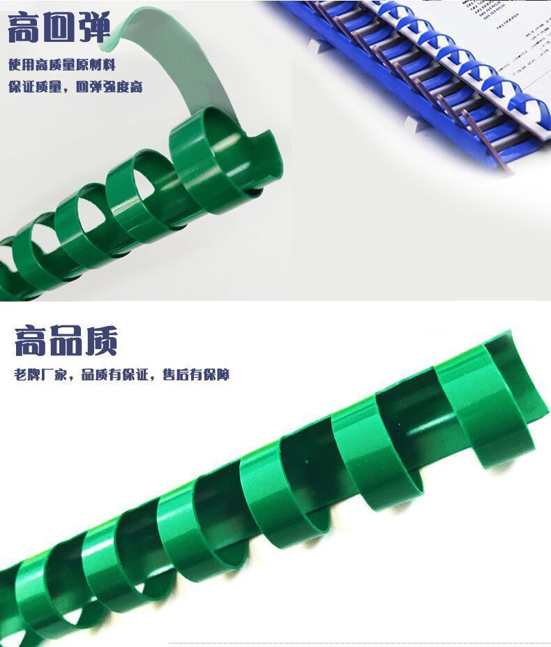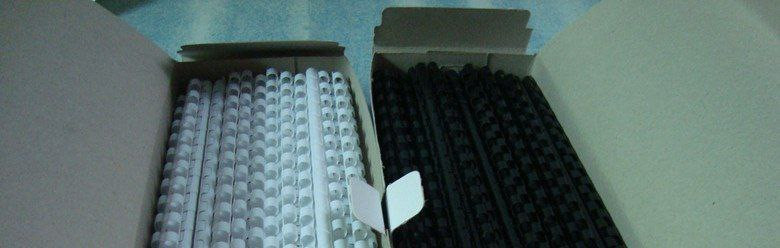 Tablier de reliure en plastique de 8 mm, 100 pièces in pack, anneau de reliure à 21 trous, couleur noir et blanc, reliure en peigne