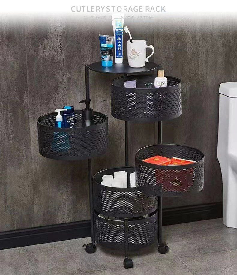Étagère à légumes en acier au carbone domestique sans installation, étagère rotative de cuisine carrée multicouche amovible a 5 tiers