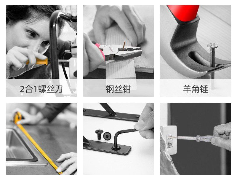 Outils de quincaillerie multifonctionnels pour la maison, pinces, ruban à mesurer, marteau, réparation à domicile, boîte à outils manuelle, ensemble combiné