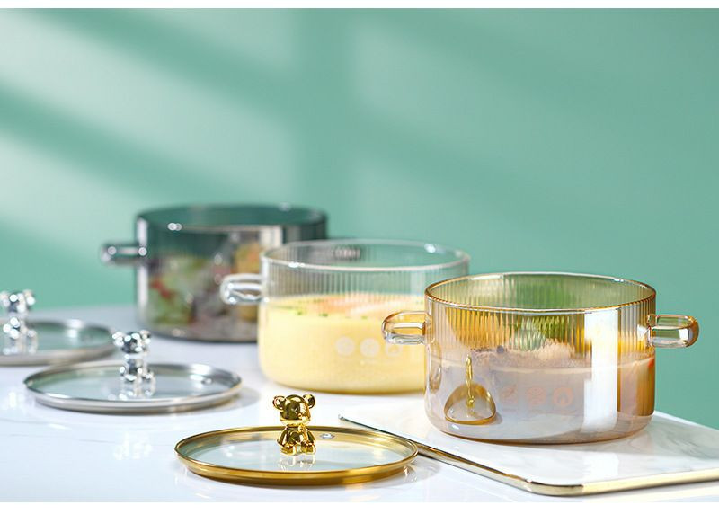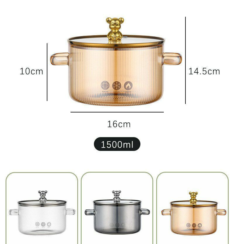 Mini casserole a induction en verre Épaissison de verre à borosilicate élevé mignon ours ménage alimentaire supplémentaire soupe nouilles bol lait