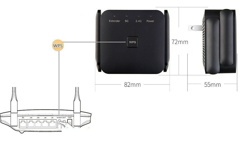 Répéteur wifi AC1200M DE WIRESS DUAL-BAND 5G / 2.4G, Amplificateur de réception WiFi de 1200m Amplificateur Signal sans fil Expansion EXPANSION AMHANCER 5G Répéteur de routage