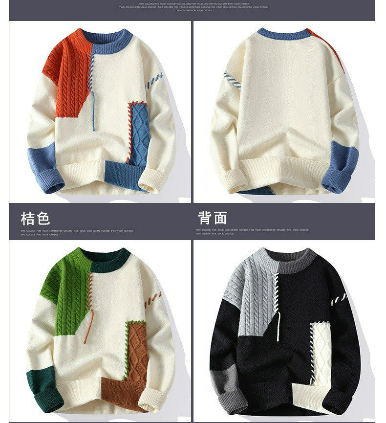 Nouveau Pulls en tricot patchwork col rond de style décontracté Base pull en tricot, vêtements pour hommes