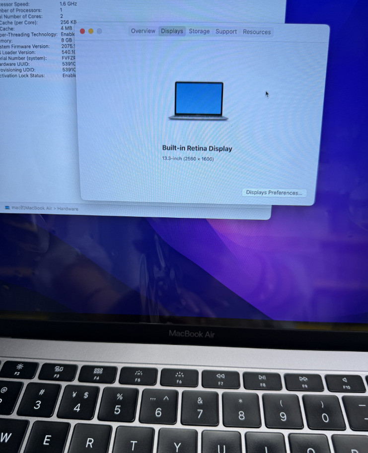 MacBook Air Apple 2019 13,3 pouces ordinateur portable d'occasion 95% Core i5 RAM 8G + disc dur SSD