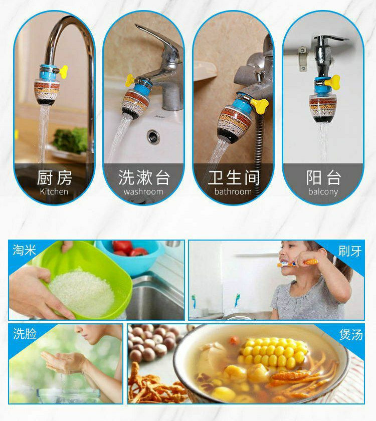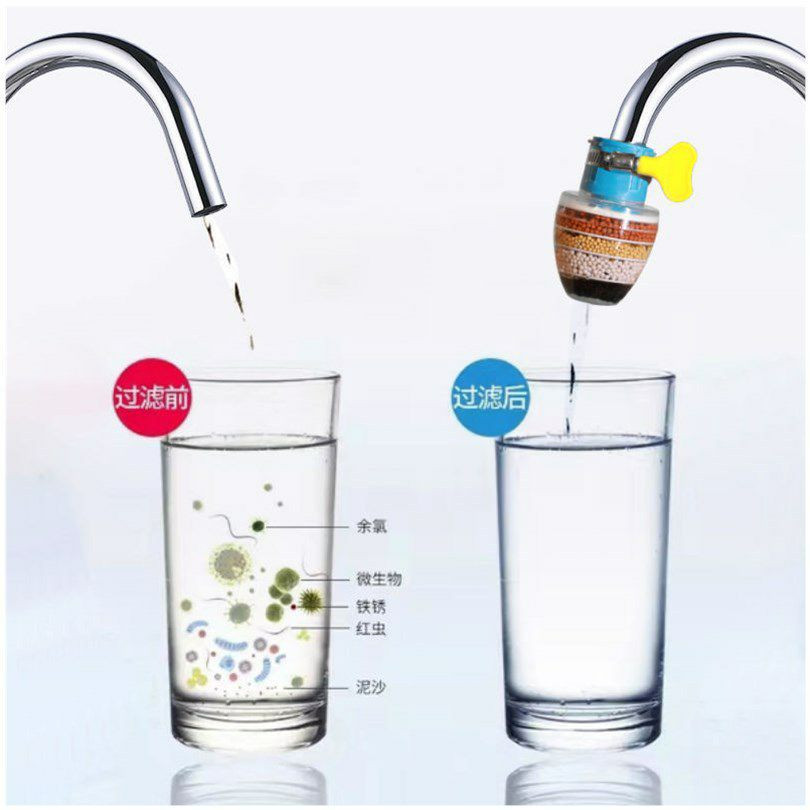 Filtre à eau de robinet de cuisine à charbon actif, élimine le chlore, le fluorure, les métaux lourds, la cartouche filtrante multifonctionnelle antiéclaboussures