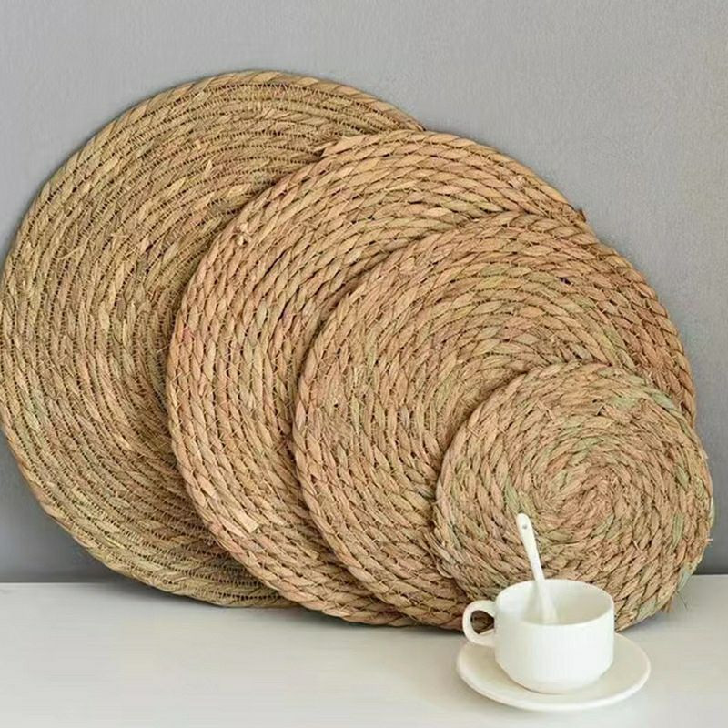Tapis d'isolation de chaleur de ratant paille rond bol, tapis plateau de table a manger à domicile, pastorale tasse à thé