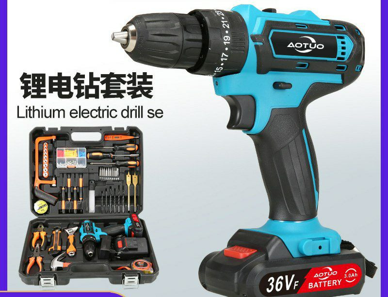 Nouveau ensemble de boîtes à outils de forage à impact électrique en 124 pièces, ensemble de combinaison de maisons, réparation de la boîte à outils de forage électrique