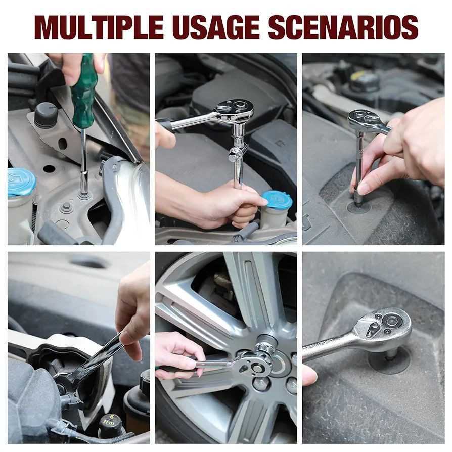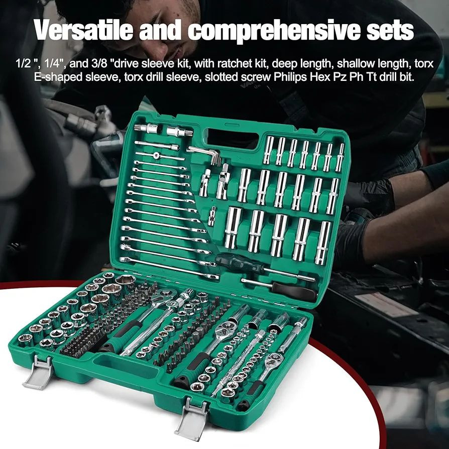 Ensemble de 216 pièces 72 dents grandes, moyennes et petites manches à cliquet volant rapide. Coffret Douille Cliquet 1/4, 3/8 et 1/2", Sae/Métrique, Acier Cr-V, Clé à Cliquet à Dégagement Rapide pour La Réparation Automobile, La Réparation à Domicile et Le Bricolage.