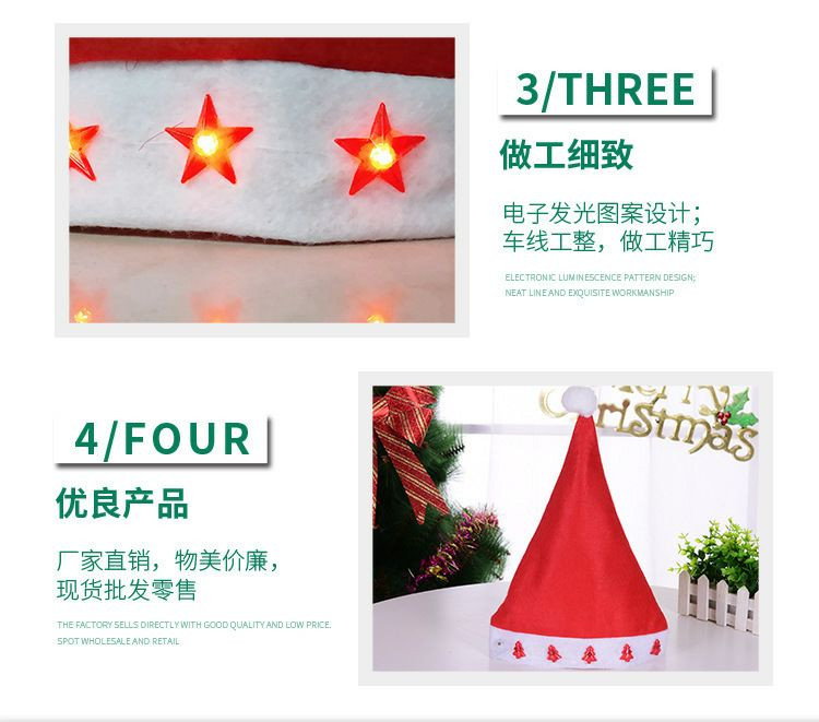 Bonnet de Noël ou de père Noel LED cinq étoiles avec des lumières chapeaux de Noël non tissés