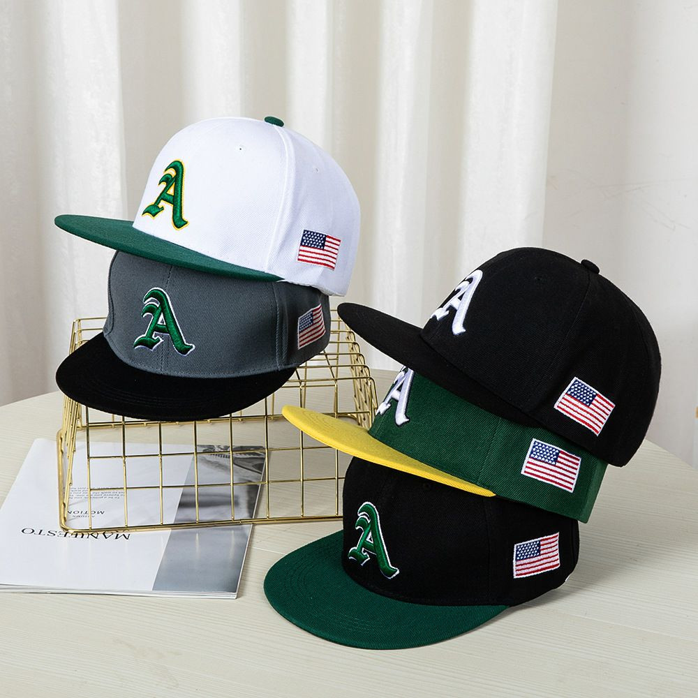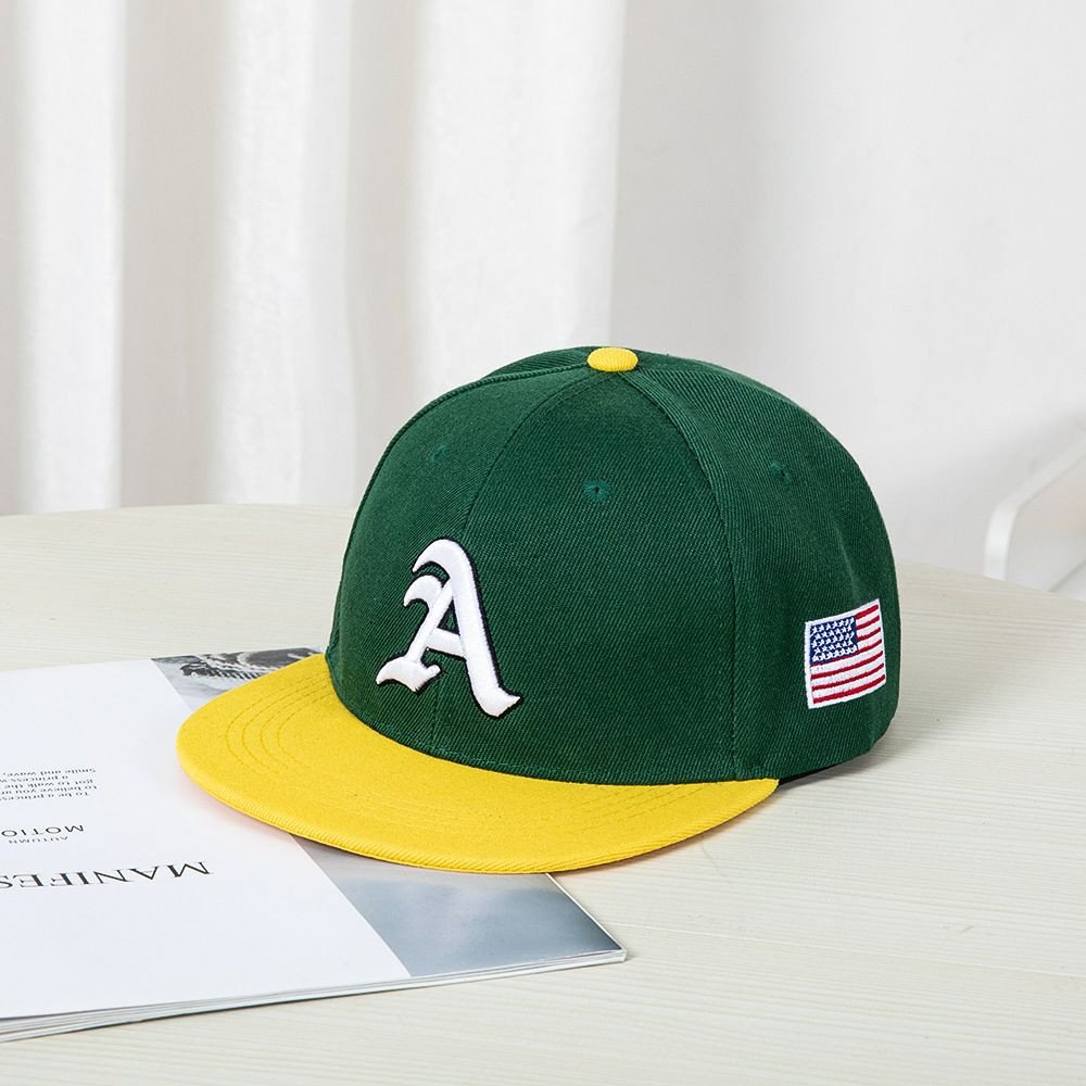 Casquette de baseball hip-hop colorée à bord plat avec lettre A brodée en trois dimensions pour hommes et femmes