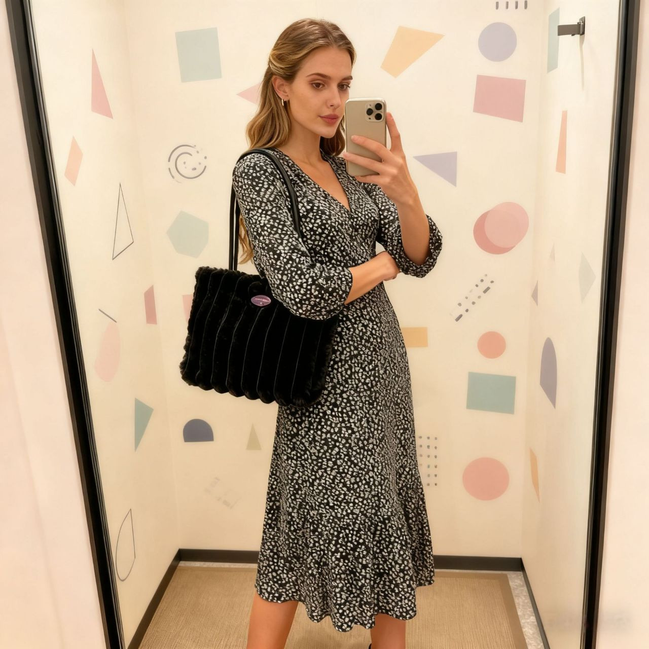 Sacs et chapeau Velours peluche avec sac à chapeau sac à main sous les aisselles de grande capacité pour les femmes travaillant et faisant la navette grand sac rayé texturé