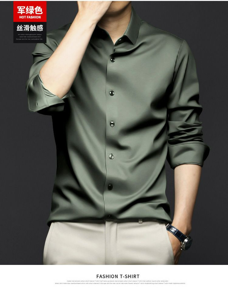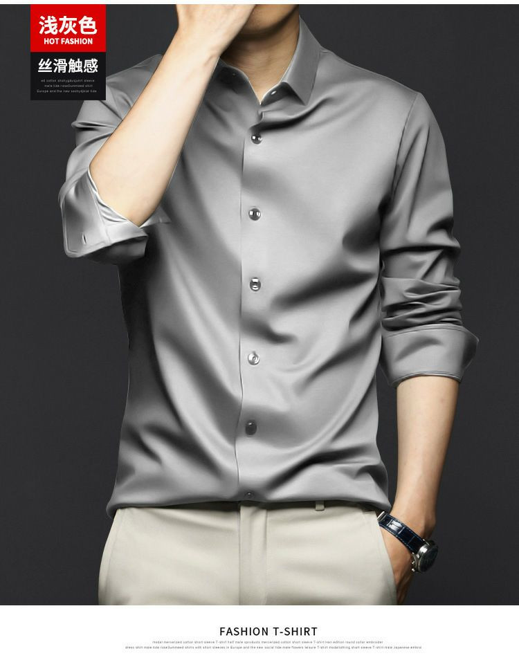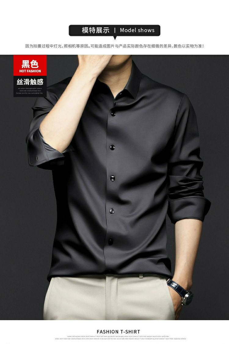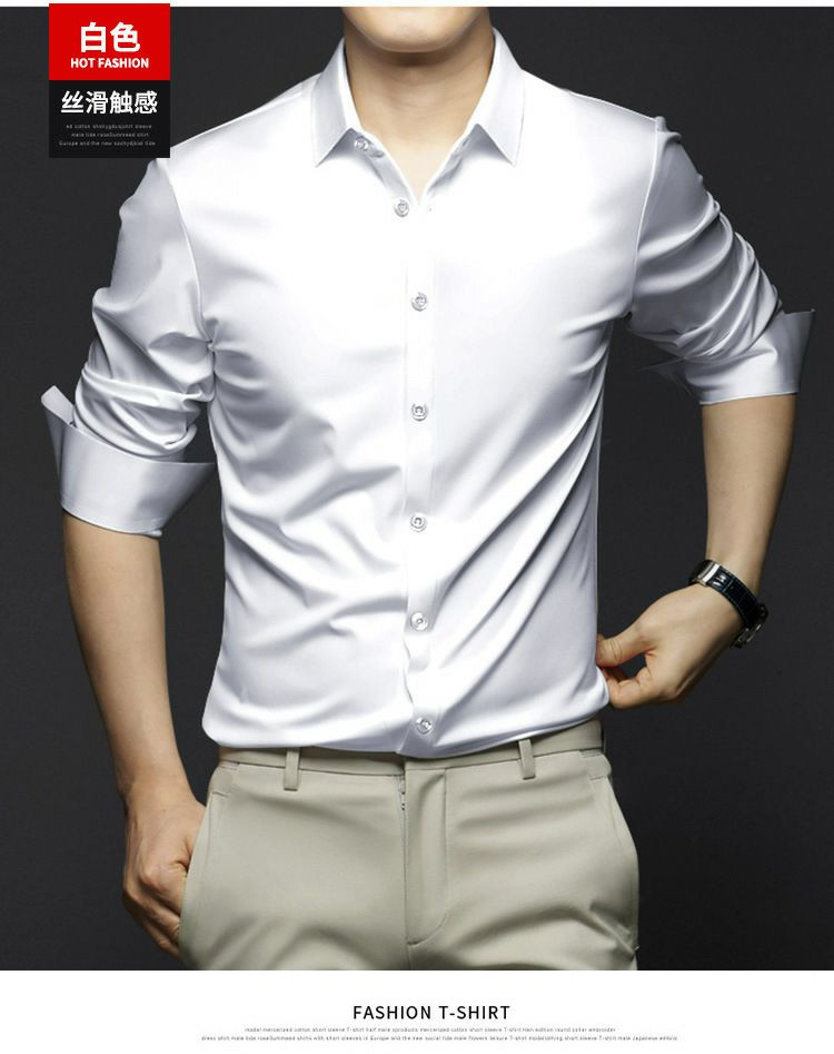 Chemises à manches longues pour hommes, anti-rides, sans repassage, vêtements de cérémonie professionnels, chemises d'affaires haut de gamme en soie glacée, chemises en pouces