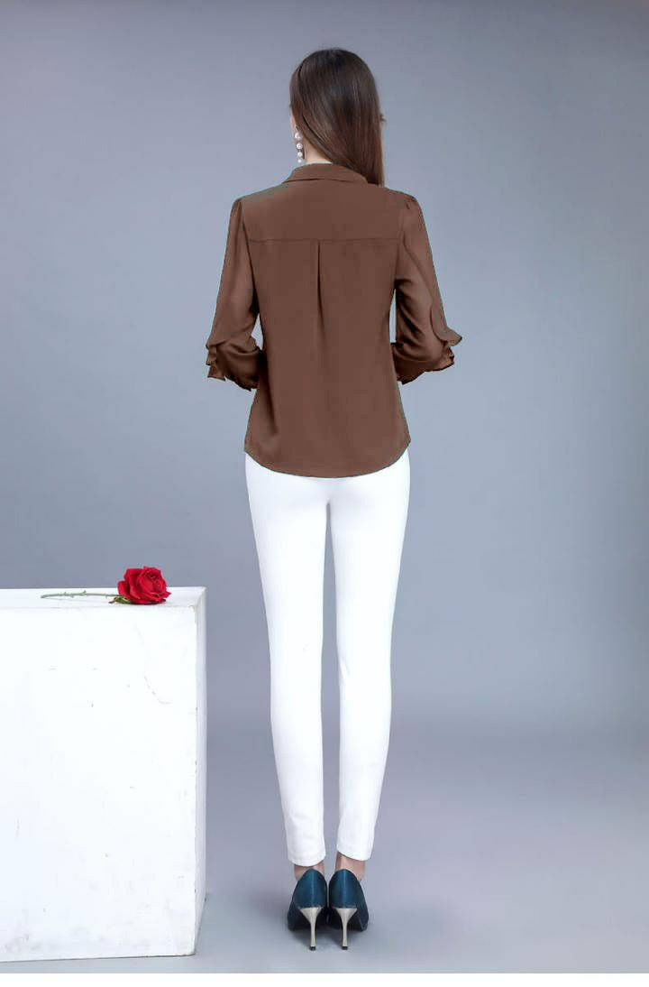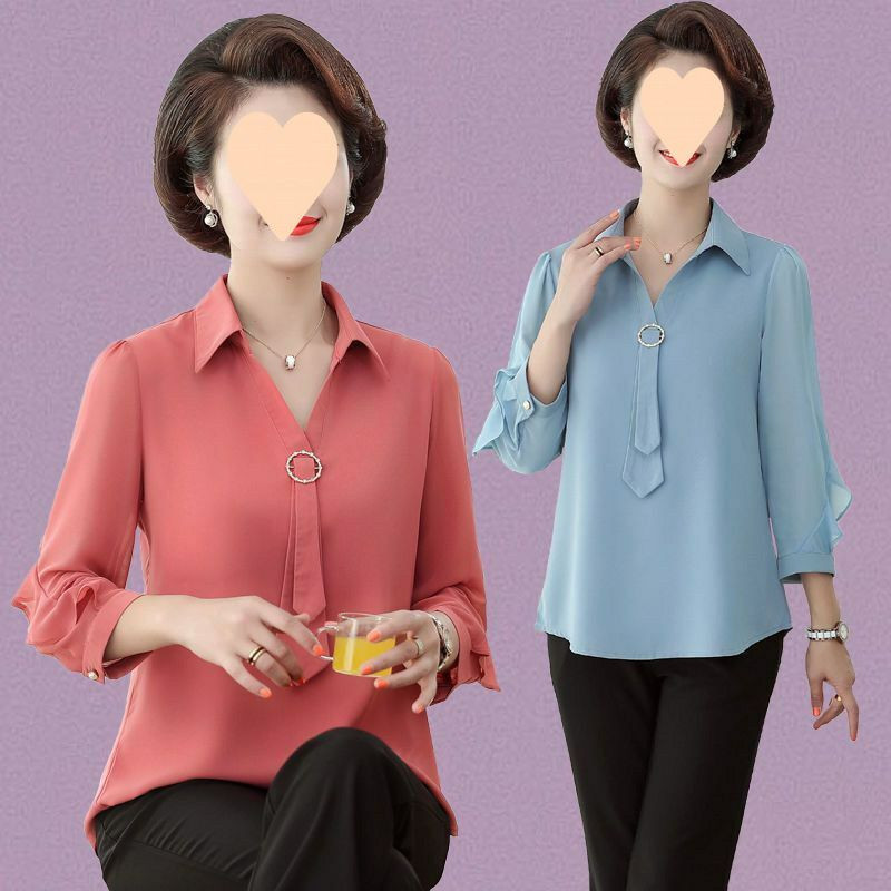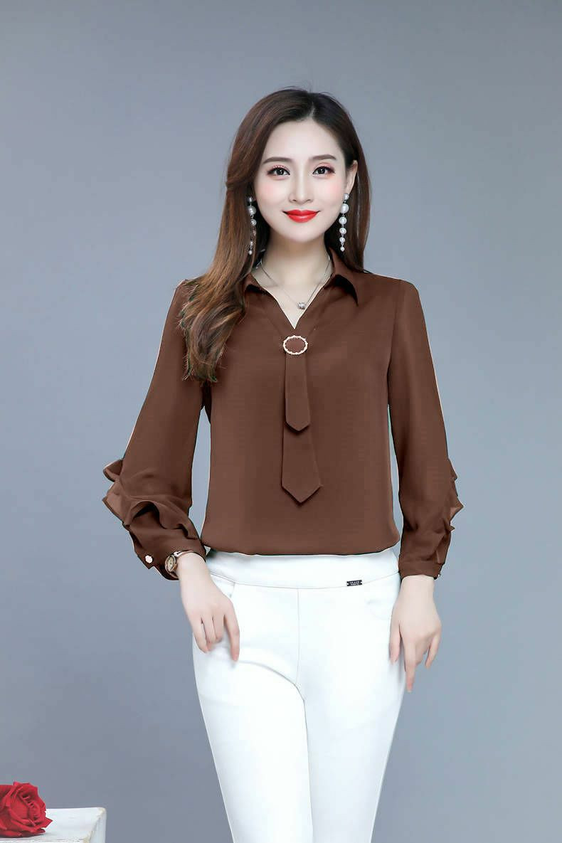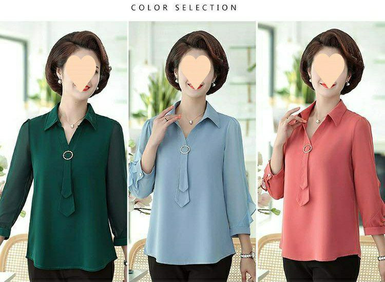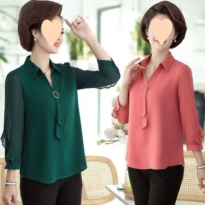 Chemises à manches longues pour femmes d'âge moyen, chemise à col en mousseline de soie à la mode slim