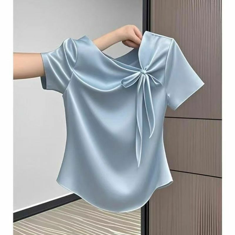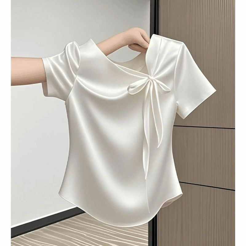 Chemisier de style français présente un nœud papillon et des manches courtes.