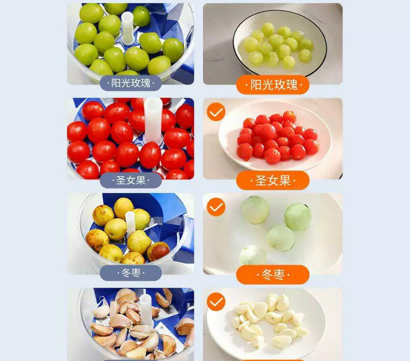 Un éplucheur électrique automatique pour petits fruits et légumes, comme les raisins, les tomates cerises et l'ail.
