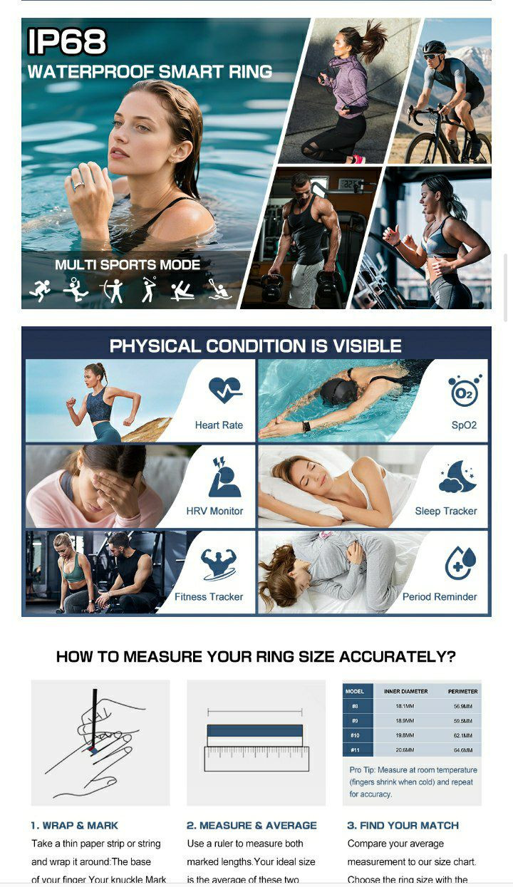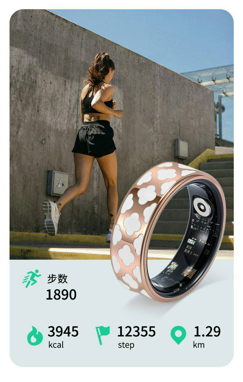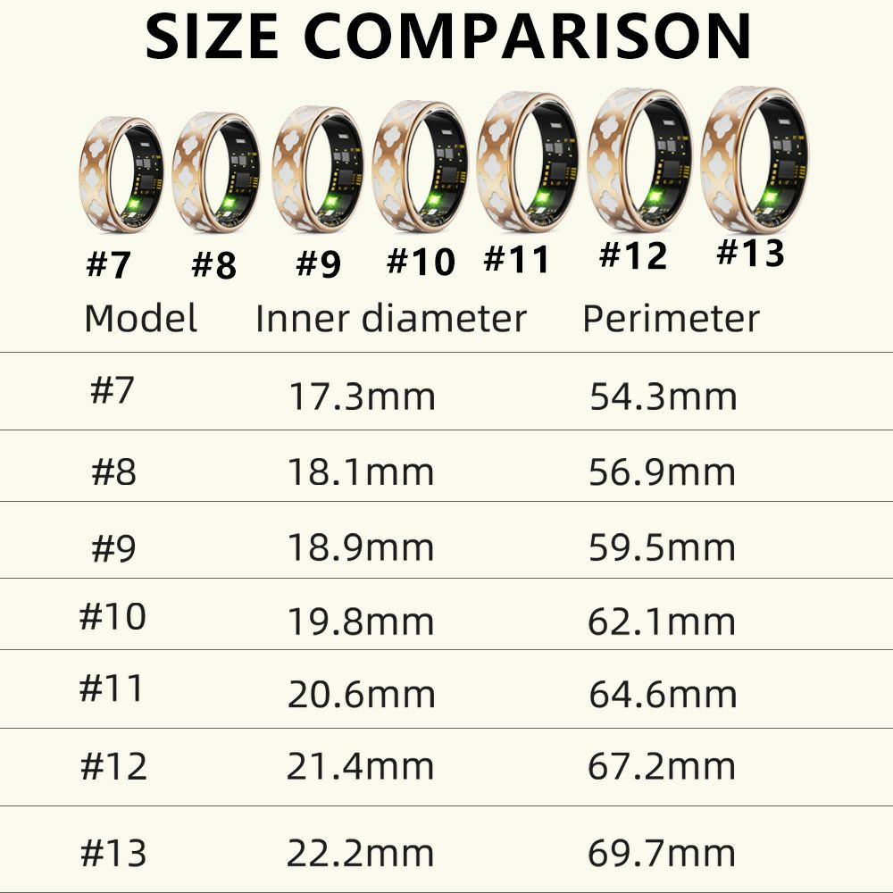 Bague Connectée Étanchéité IP68, Anneau Connecté avec Fréquence Cardiaque/SpO2/Podomètre/Suivi de Fitness, Smart Ring Compatible Android iOS (11#)